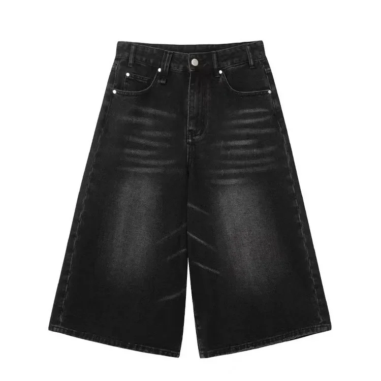 Vintage Washed Black Denim Pants Women 2024 Summer High Waist Loose Wide Leg Y2k E-Girl Unisex A-line Calf- Length Chic