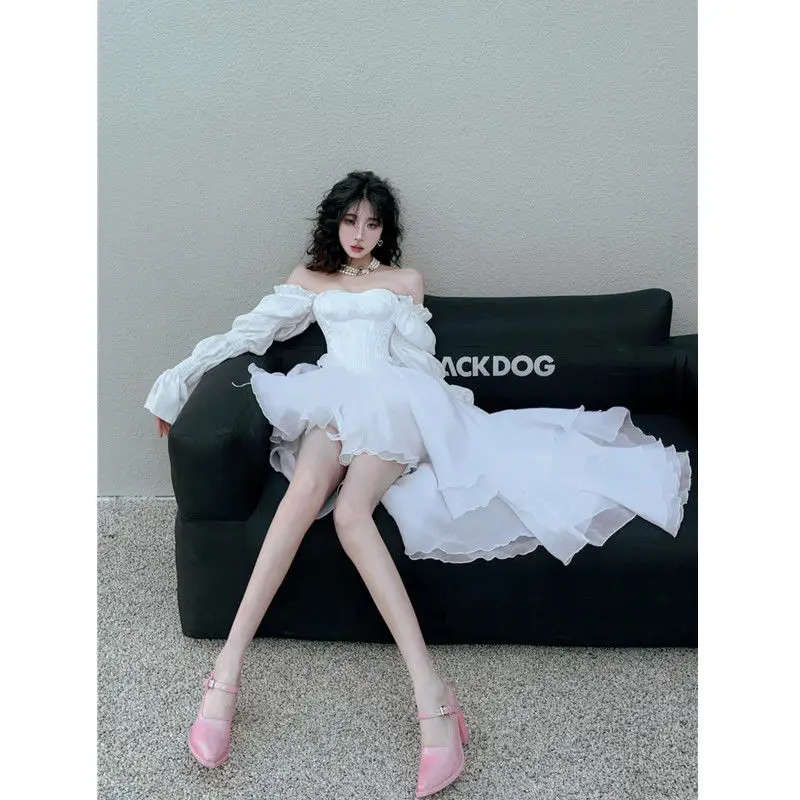 White Fairy Dress Women Elegant Evening Party Dresses Long Sleeve Mesh Patchwork Vintage Spring Fashion