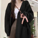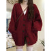 Voguable Wine Red Preppy Style Fashion Sweater Coat V-Neck Drop-shoulde Autumn Winter Loose Oversize Long Sleeve Cardigans Knitted Tops