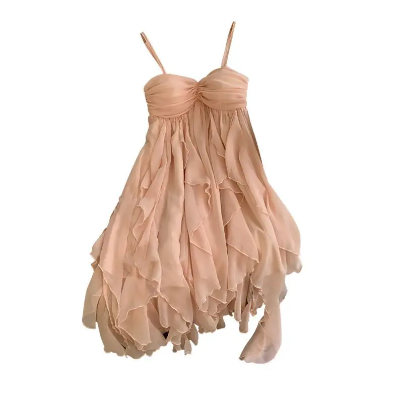 Voguable Women Sexy Backless Hotsweet Strapless Tierred Suspender Dresses 2023 Summer French Style High Waist Chiffon Party Club Dress voguable