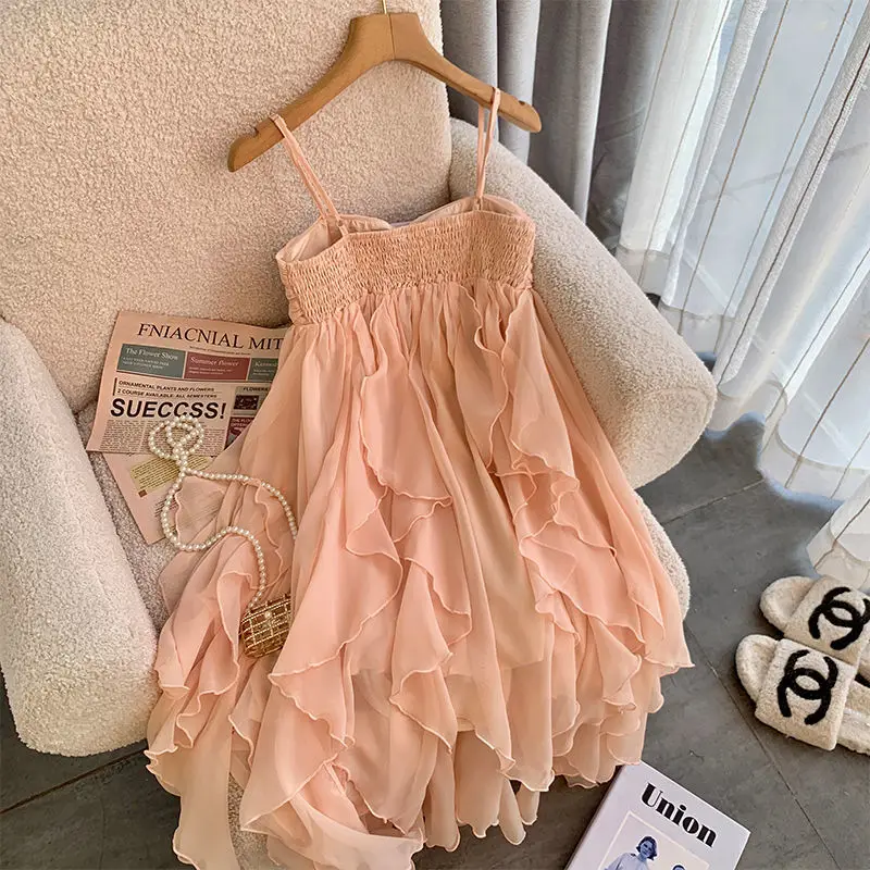Voguable Women Sexy Backless Hotsweet Strapless Tierred Suspender Dresses 2023 Summer French Style High Waist Chiffon Party Club Dress