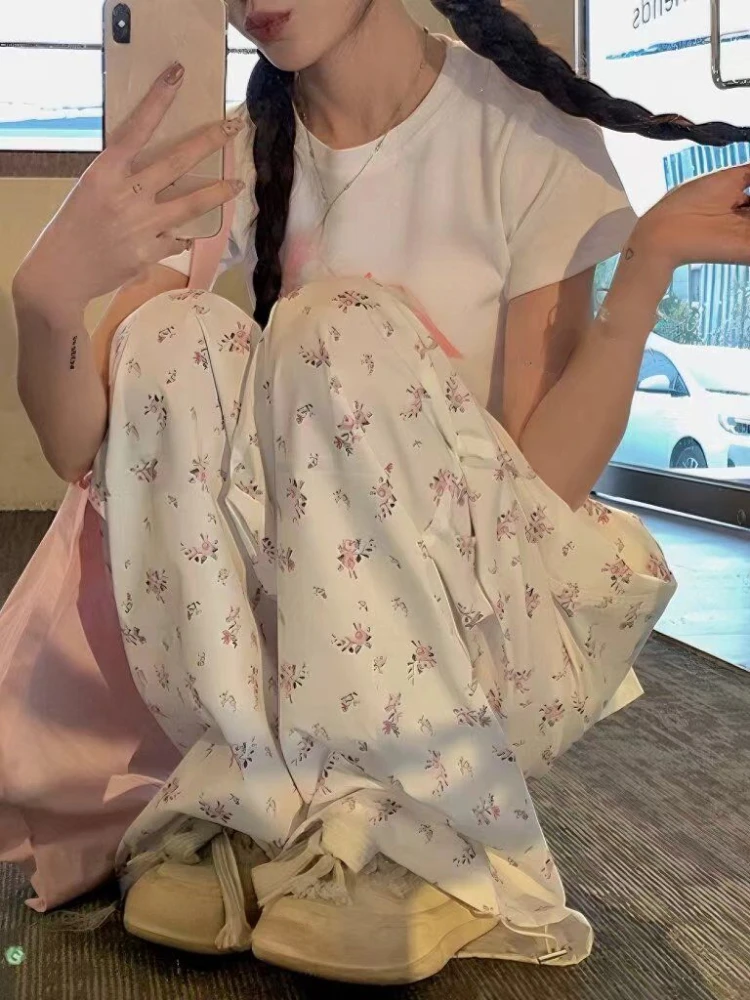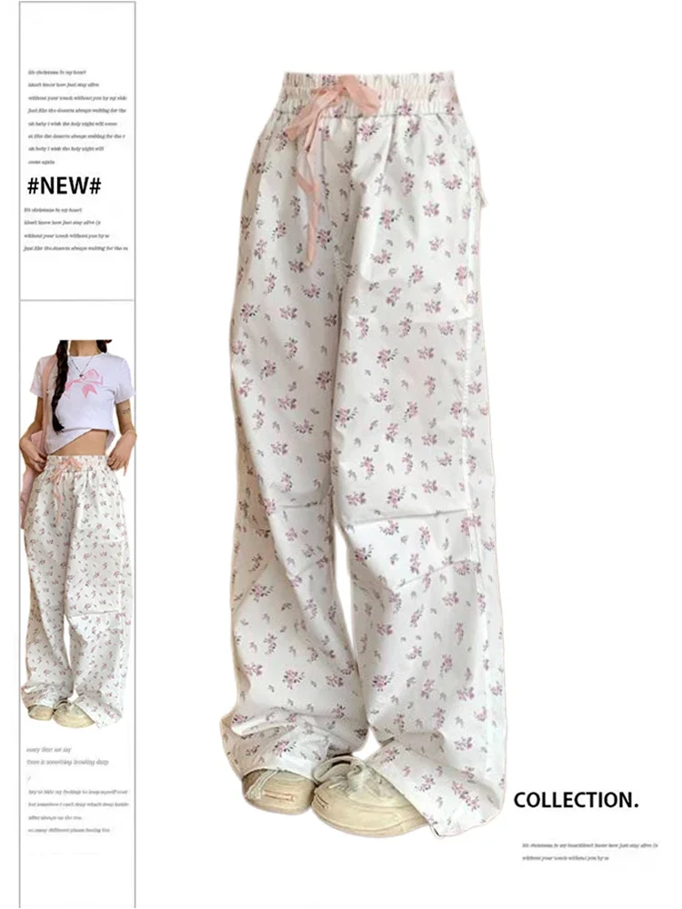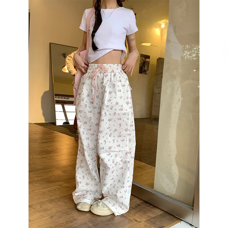 Women's Flower Print Pants Y2k 2000s Fashion High Waist Baggy Trousers Harajuku Wide Leg Pants 90s Aesthetic Fashion Clothes New