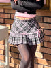 Y2K Preppy Style Plaid Ribbons Bow A-line Pleated Mini Skirt Dark Academia High Waist Short Skirts Cute Aesthetic
