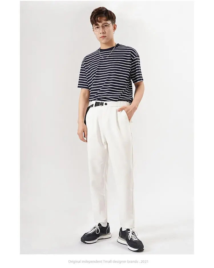 White Stretch Casual Ankle Pants Silhouette Men's Elegant Suit Pants Summer Korean Straight Loose Men's Smart Casual Trousers