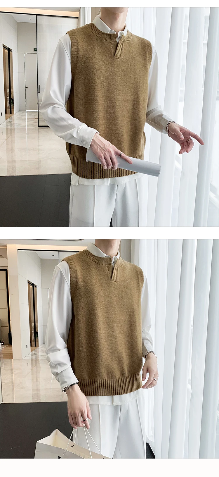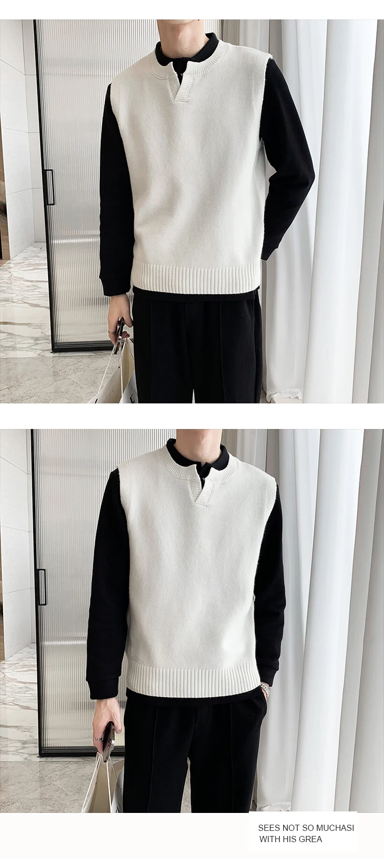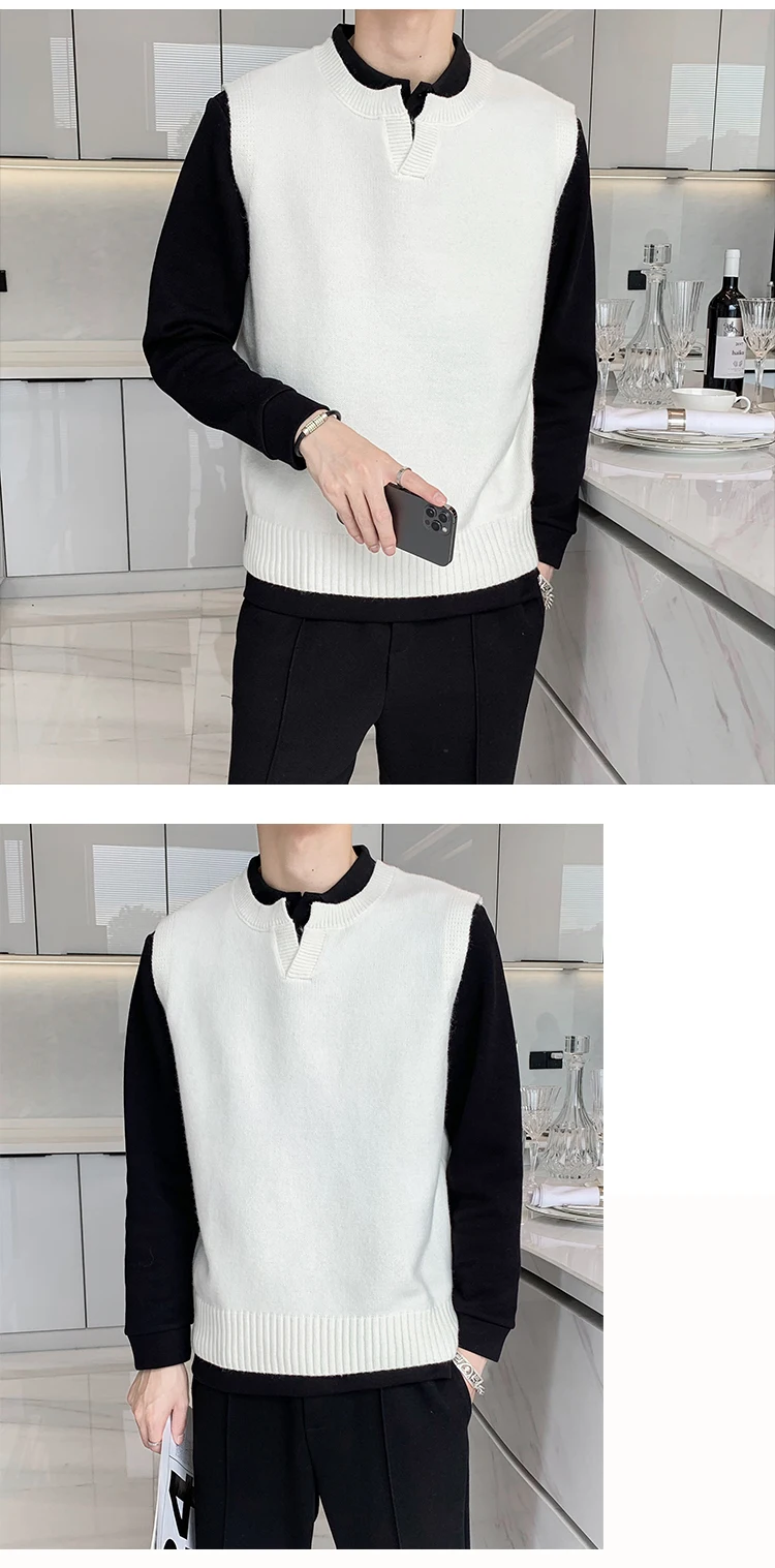 Winter Sweater Vest Men Warm Fashion Slim Fit Sweater Vest Men Korean Casual V-neck Sleeveless Sweater Mens Jumper Clothes
