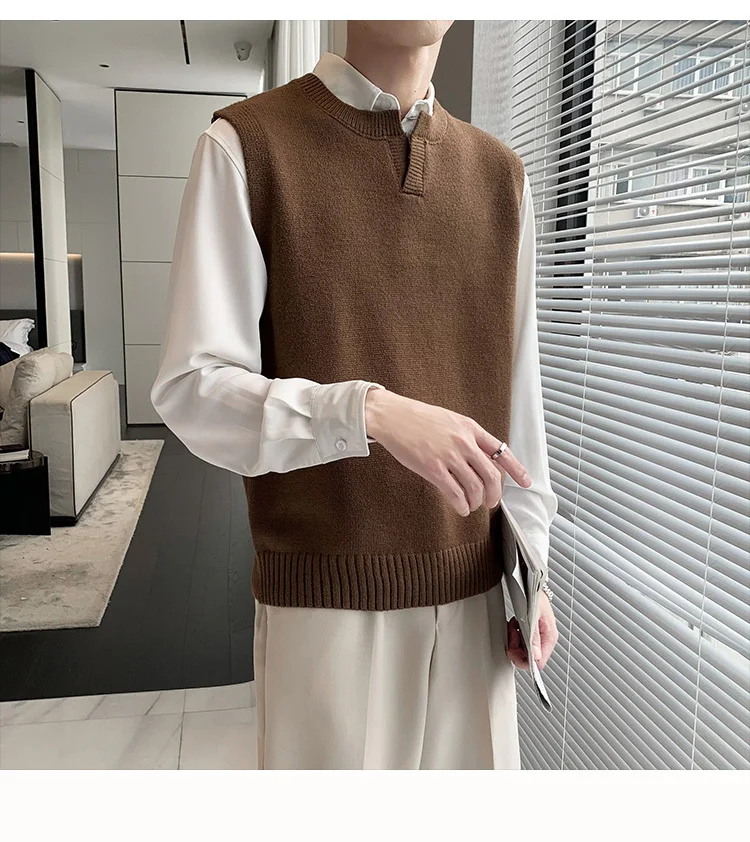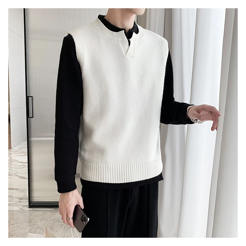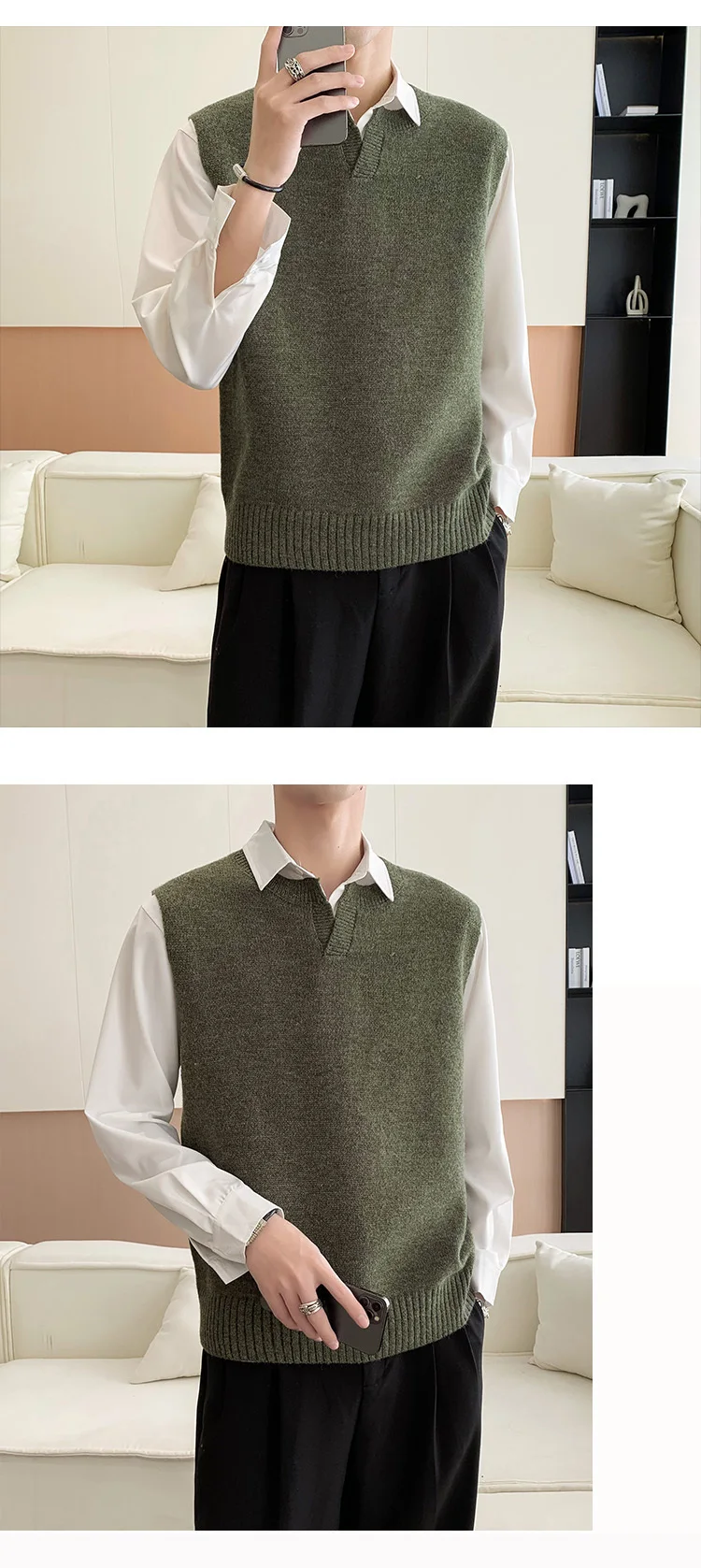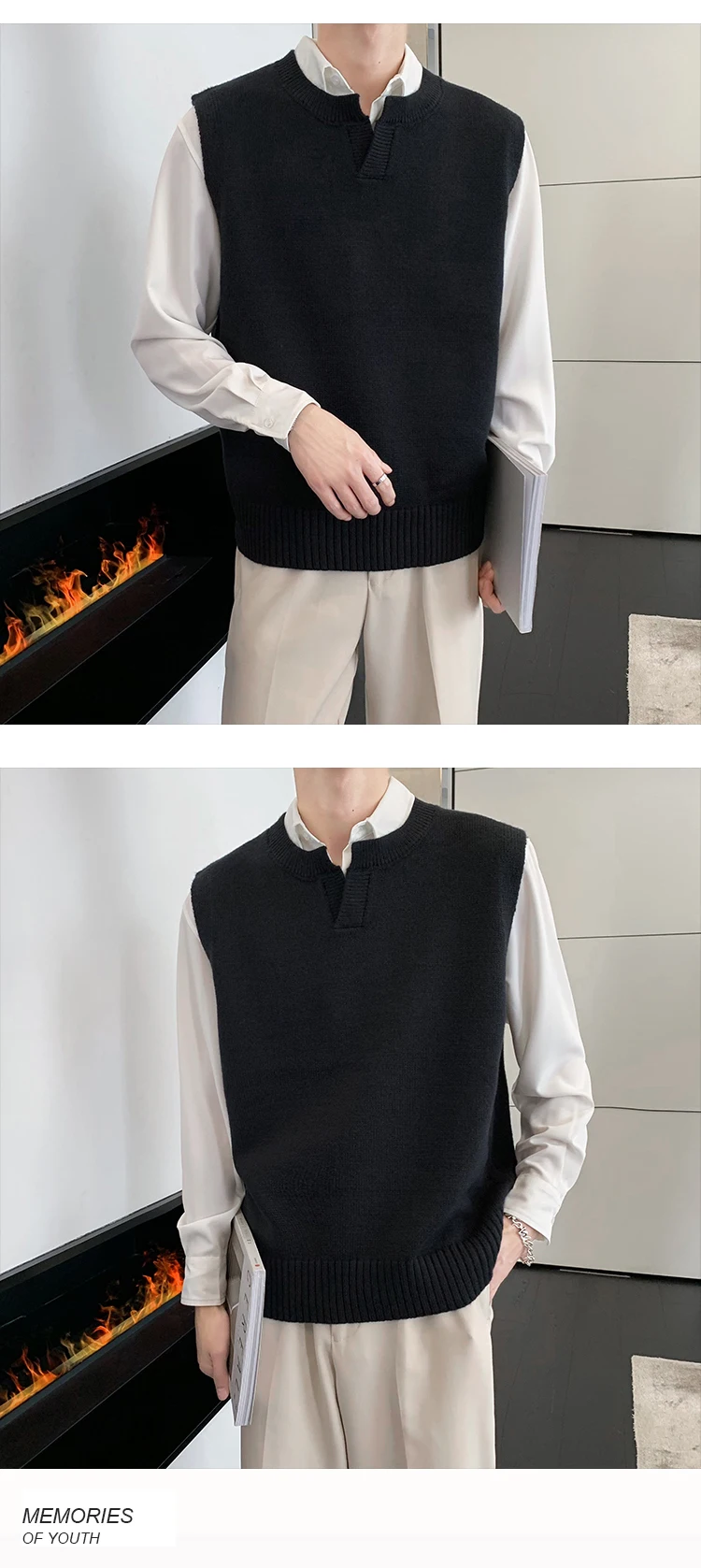Winter Sweater Vest Men Warm Fashion Slim Fit Sweater Vest Men Korean Casual V-neck Sleeveless Sweater Mens Jumper Clothes