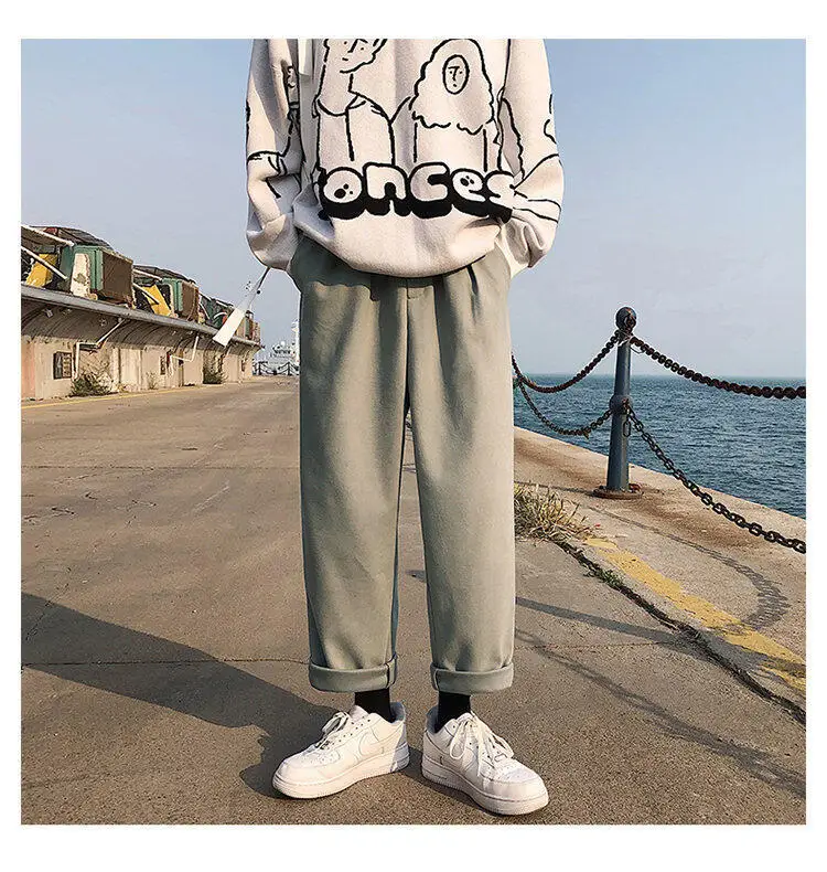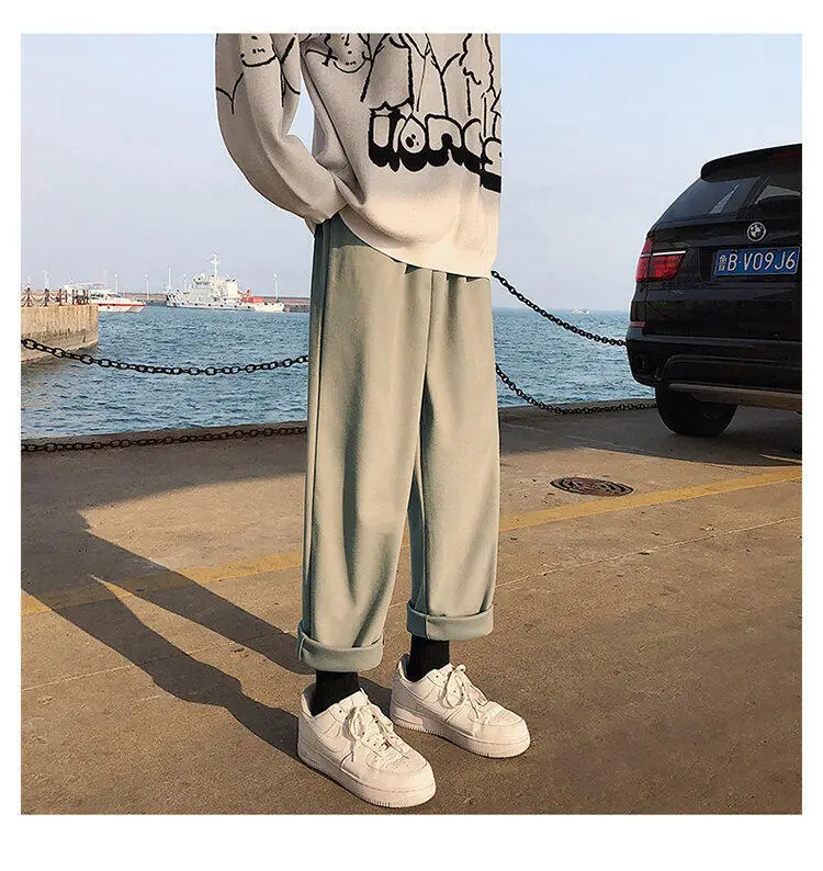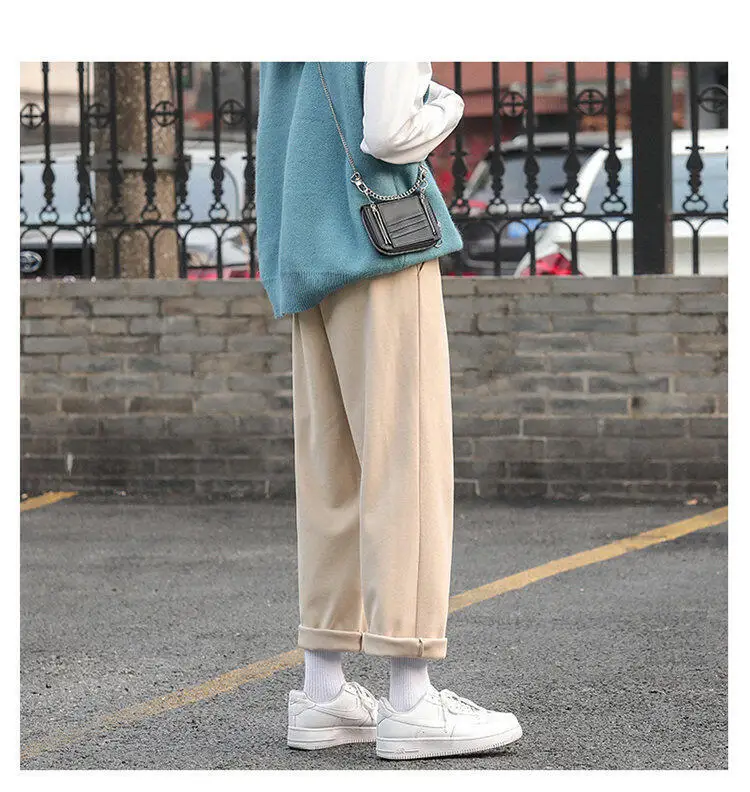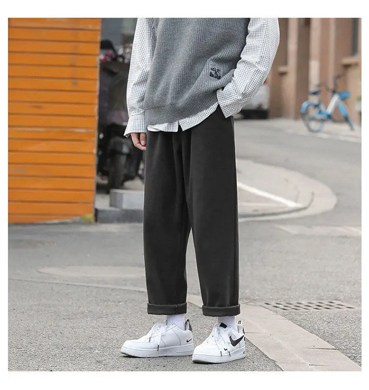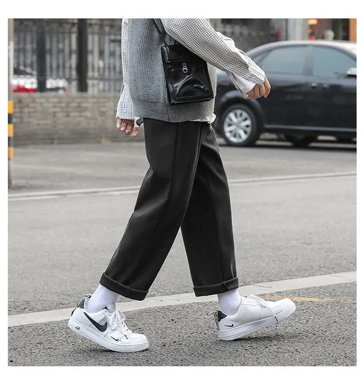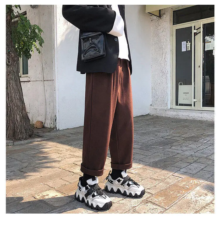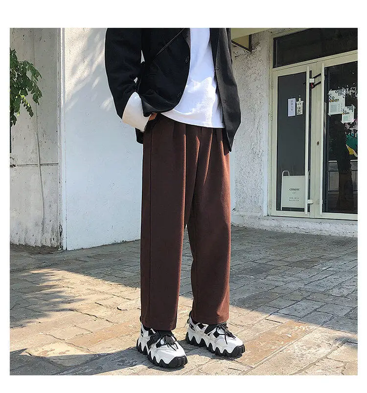 Winter Thick Woolen Pants Men Warm Fashion Casual Straight Pants Men Korean Loose Wide Leg Pants Mens Thicken Suit Trousers