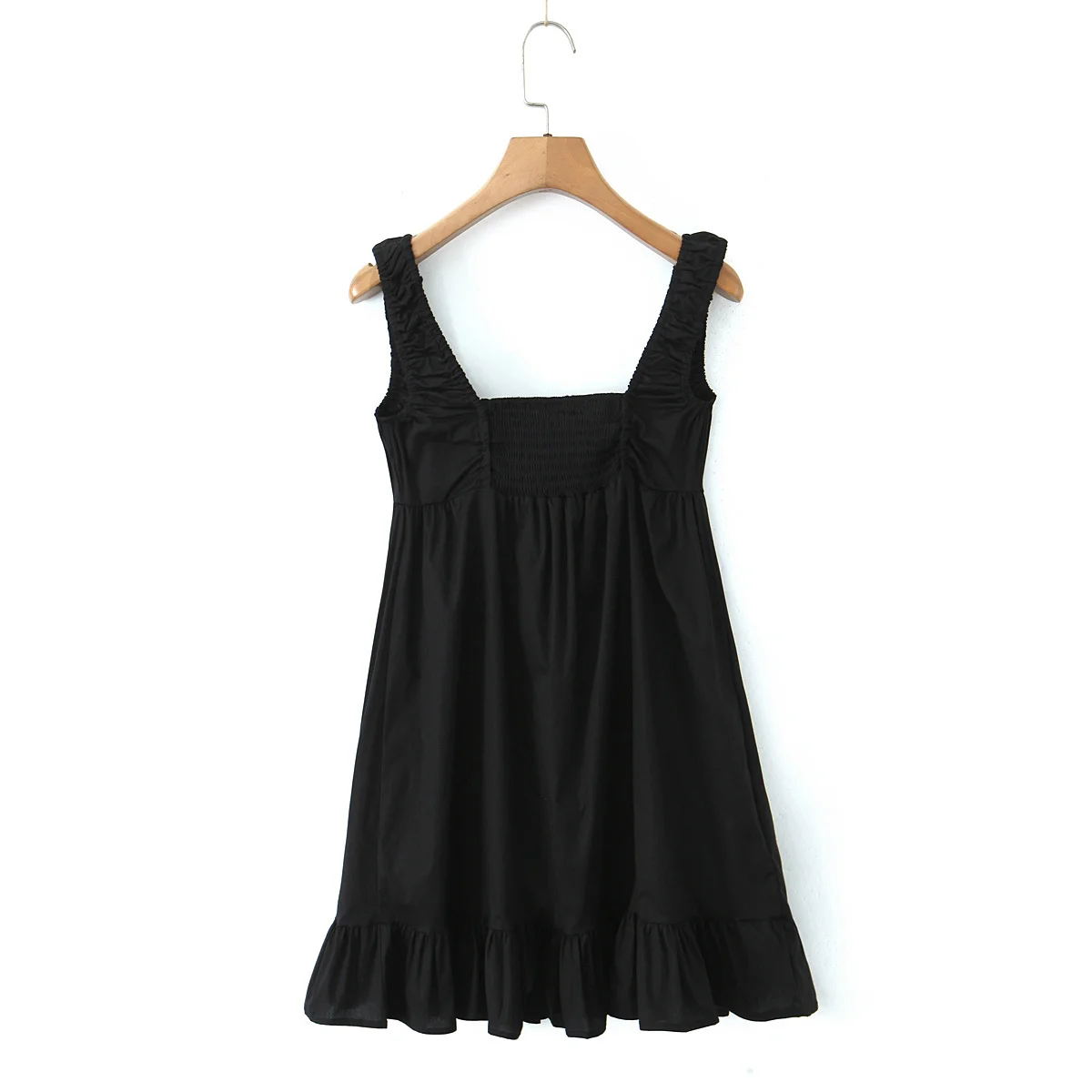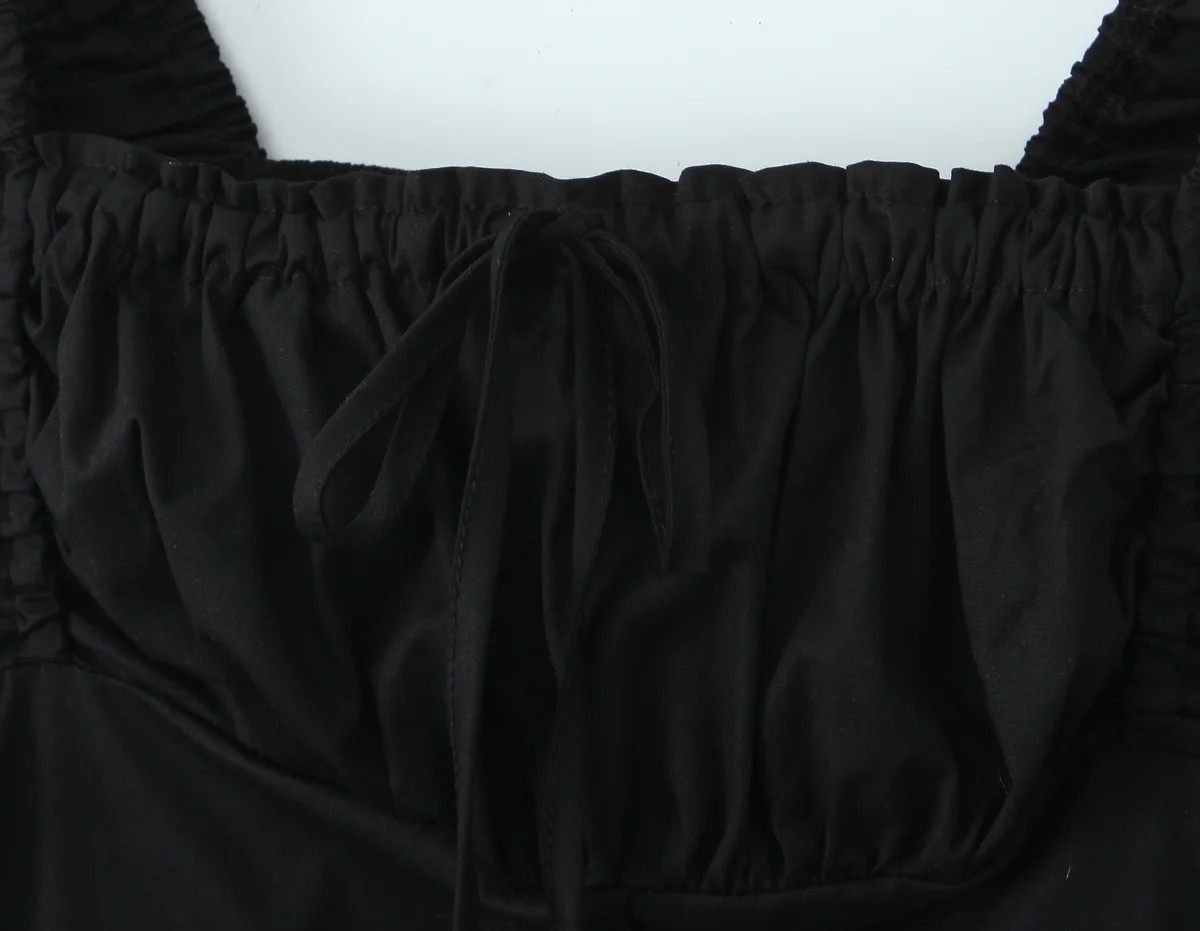 Women Black White Cotton Sleeveless Dress Elegant Square Neck High Waist A-line Mini Dresses Summer Casual Robe