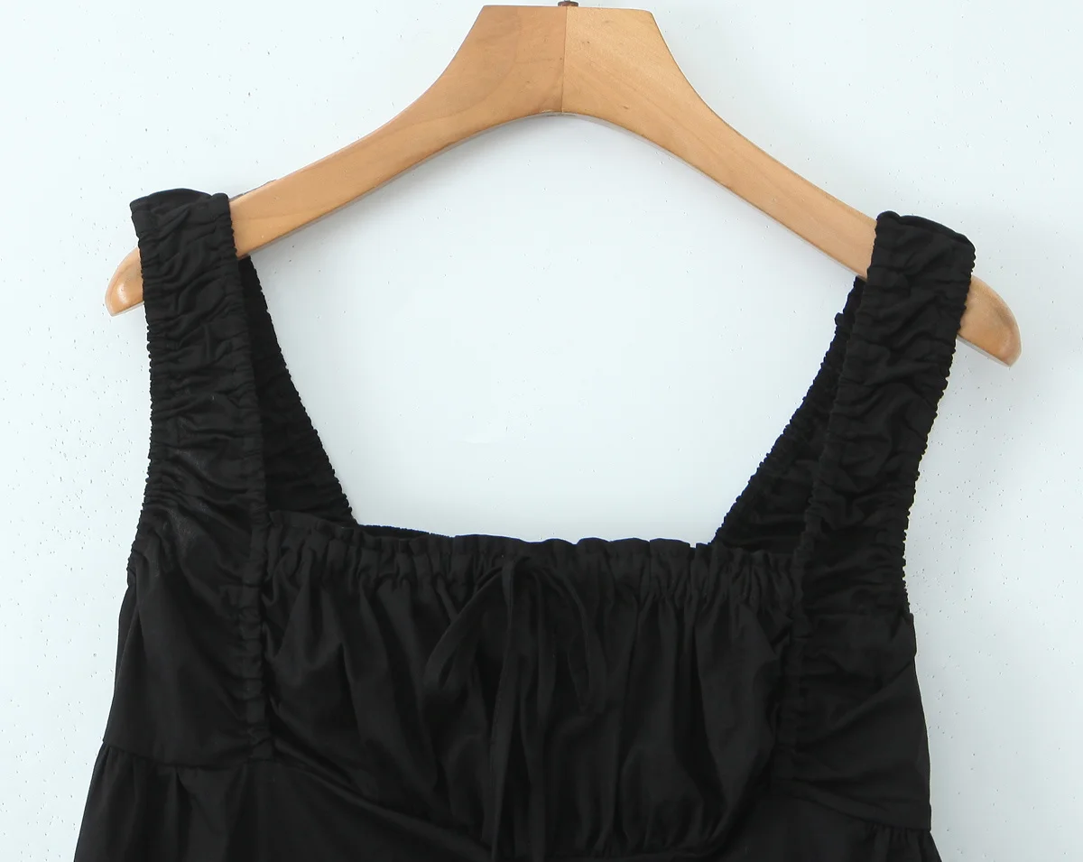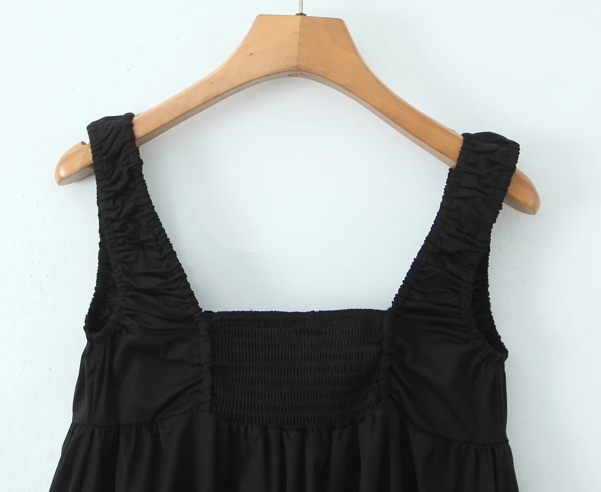 2025 Women Black White Cotton Sleeveless Dress Elegant Square Neck High Waist A-line Mini