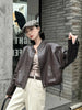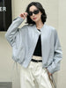 Women Blue Biker Pu Jackets Retro Streetwear Long Sleeve Moto Short Coats Casual O Neck Korean Fall Winter Pockets Outwear New