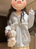 Women Cute Cartoon Hoodies Vintage Lace Patchwork Loose Sweet Sweatshirts Fall Preppy Style Japan Pockets Lady Kawaii Tops