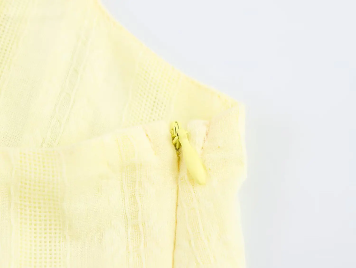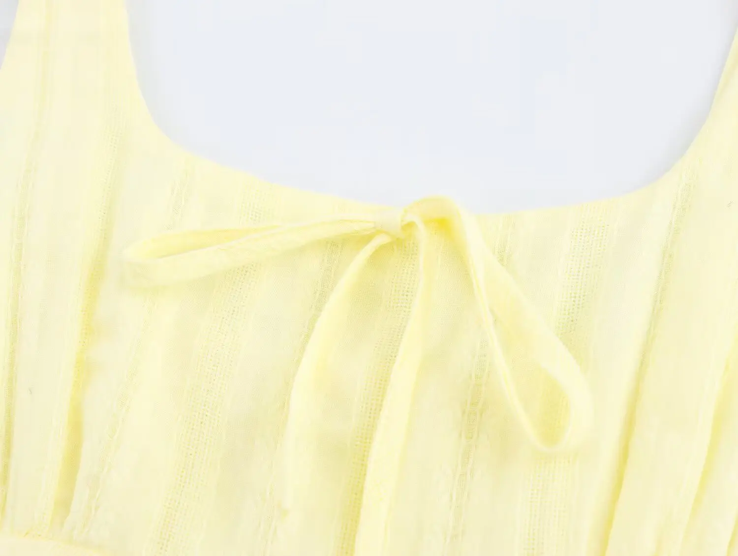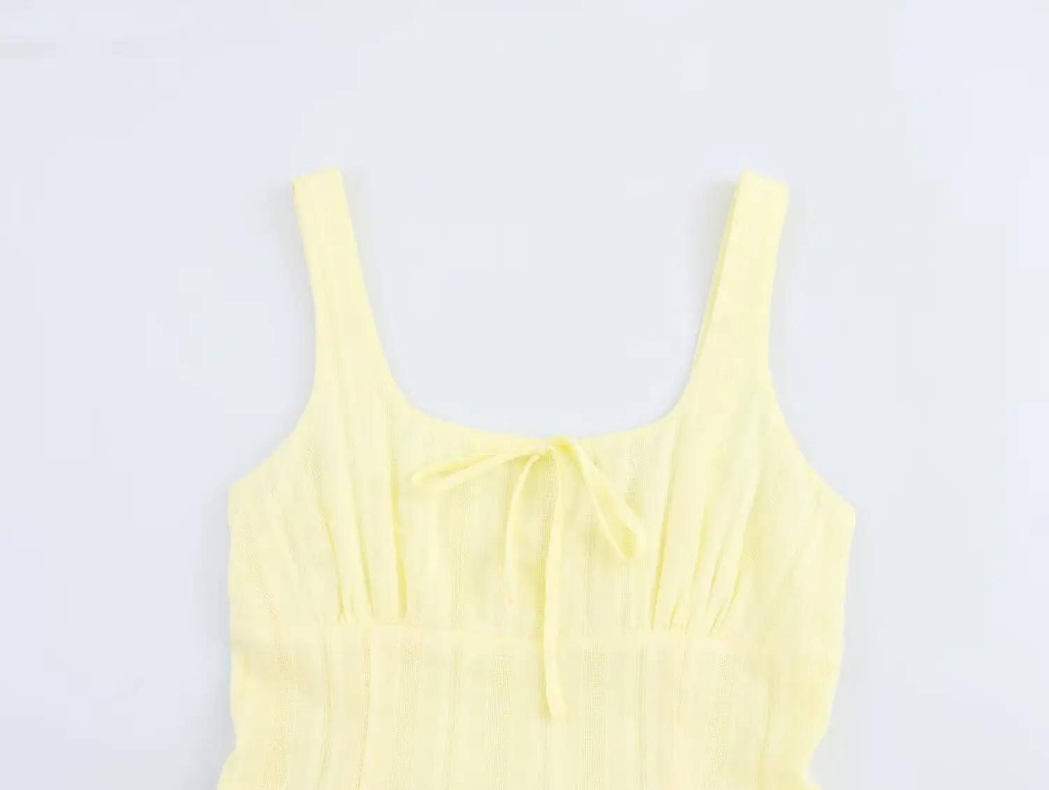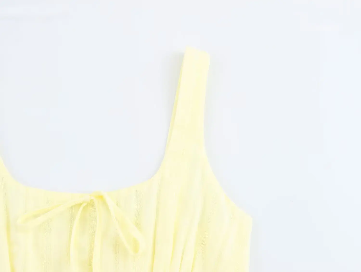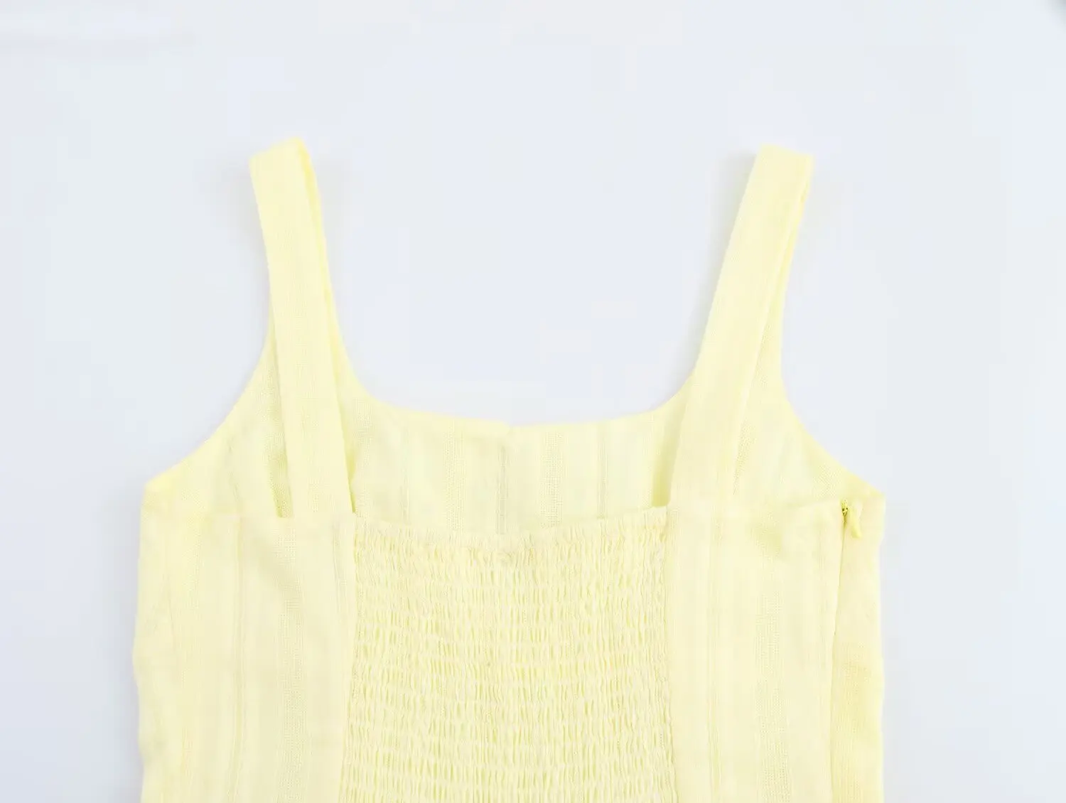 Women Elegant Square Neck Tank Long Dresses Sexy Sleeveless Low Waist A-line Yellow Summer Dress Holiday Party Robe