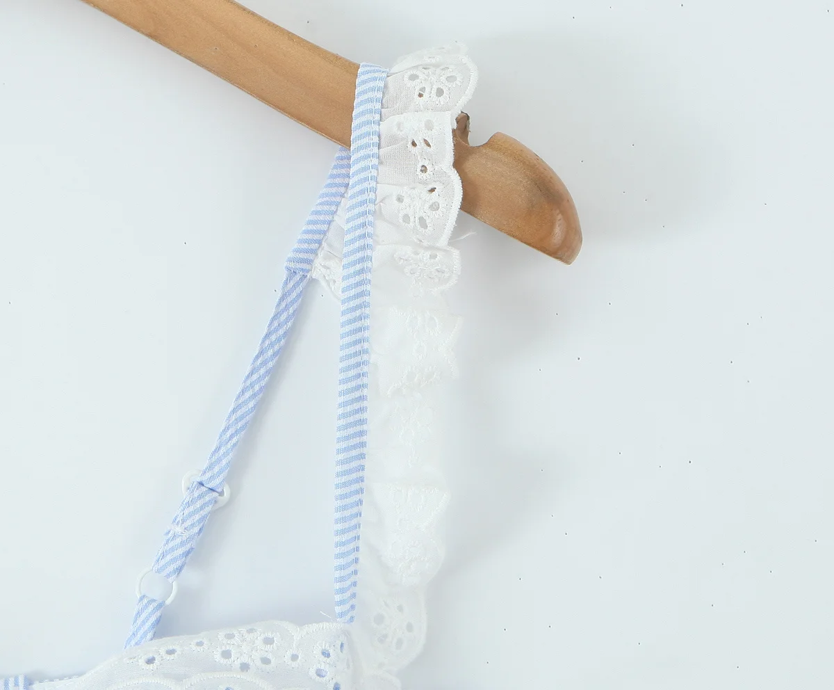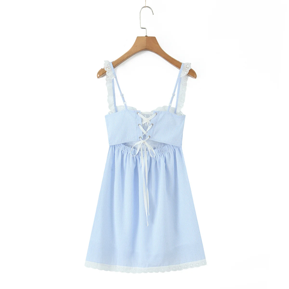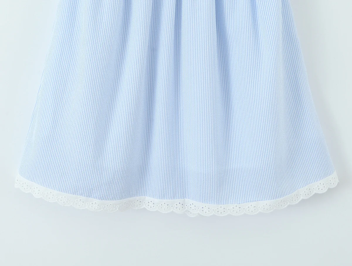 2025 Women Lace Spliced Blue Striped Sling Short Dress