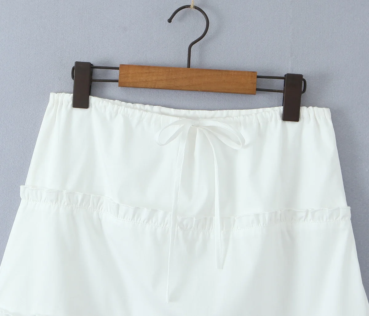 2025 Women Lace Spliced Drawstring Waist White Long Skirt