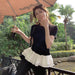Women Patchwork Fringed Ruffles O-neck Cotton Tshirt Womans Summer Clothes Elegant Solid Shirt Women Slimming Short Sleeve Tee