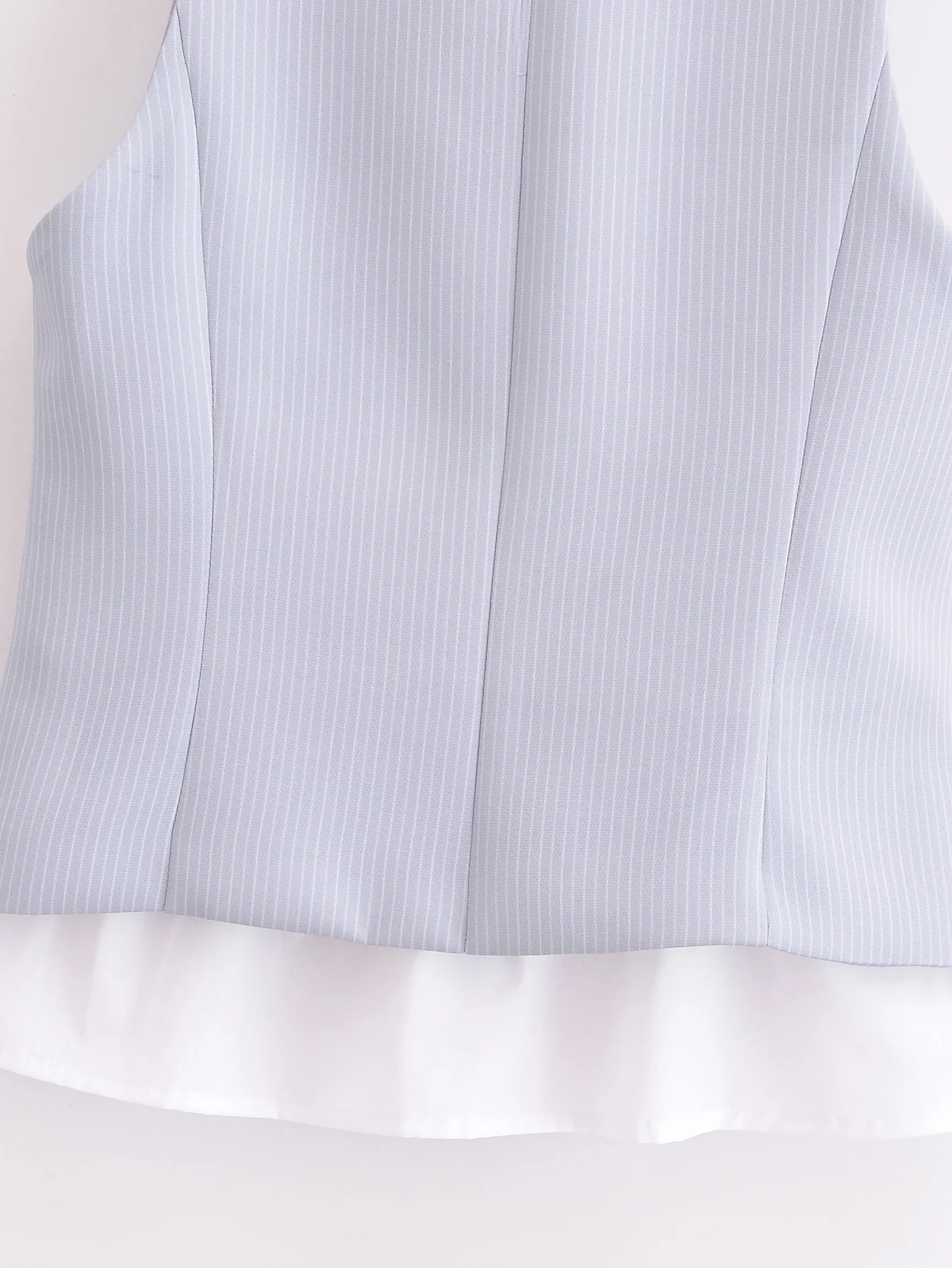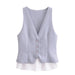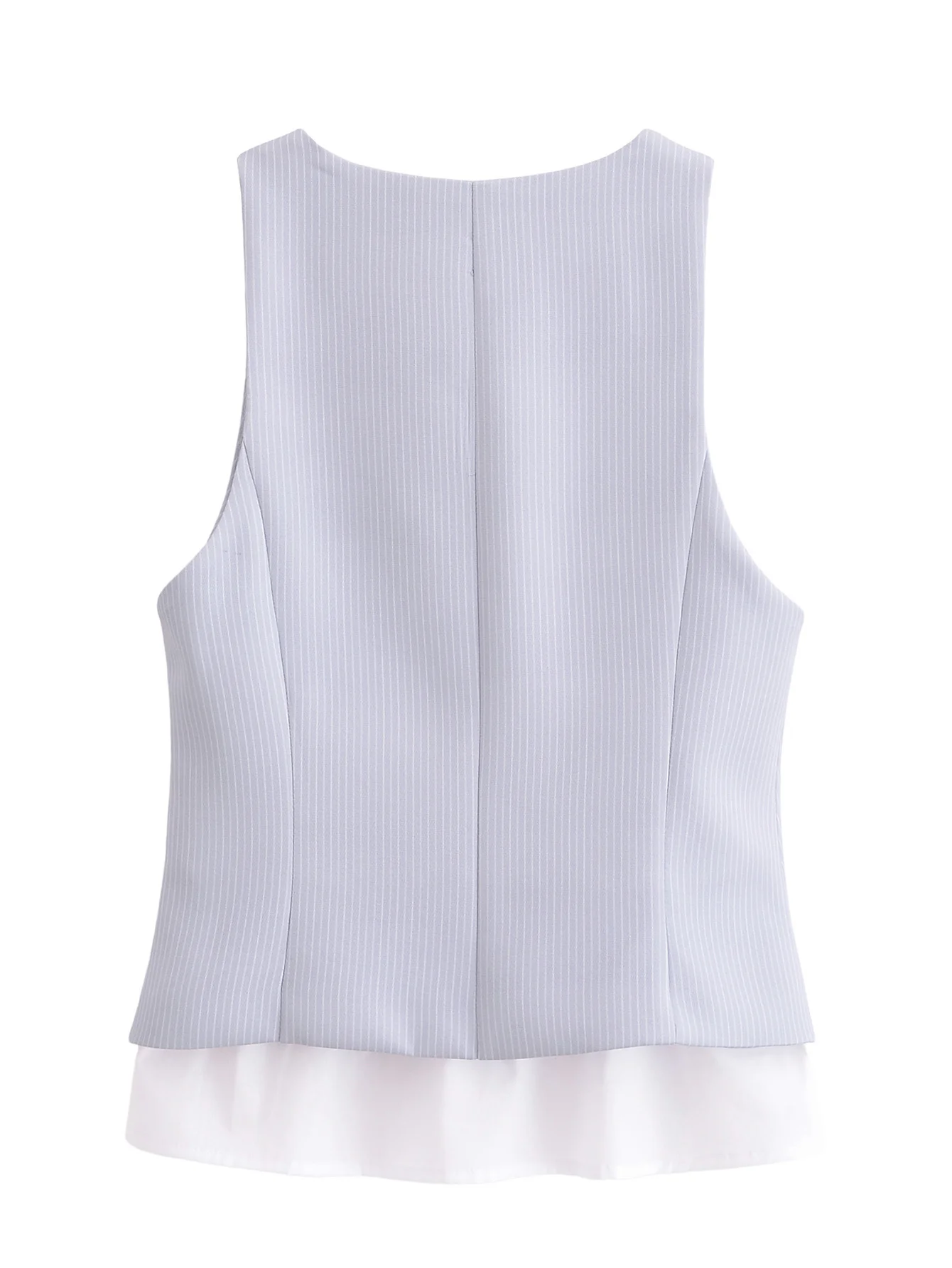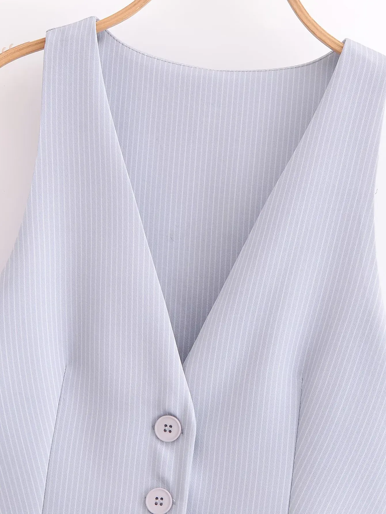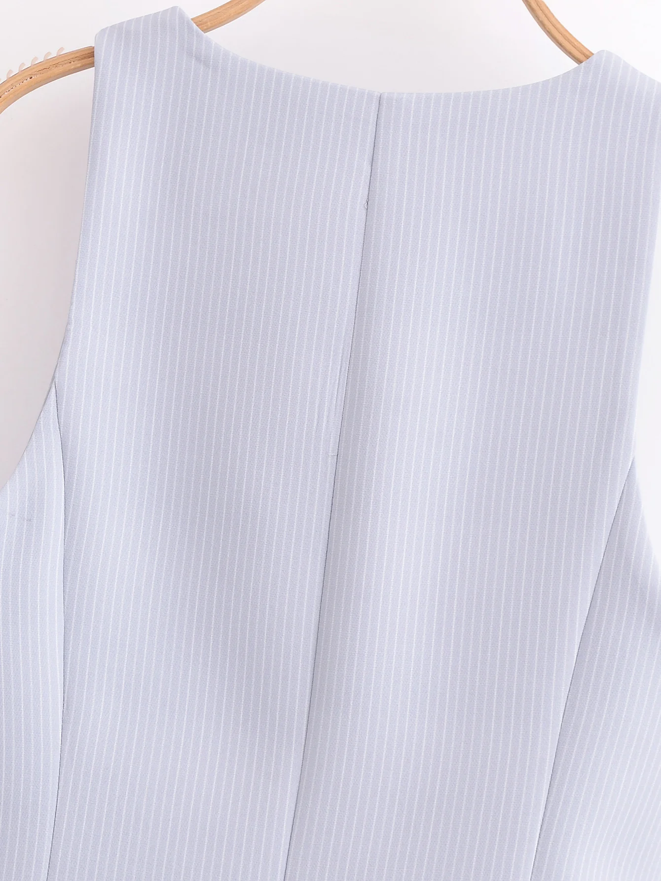 2025 Women Patchwork Striped Temperament Vest Front Button V Neck Sleeveless