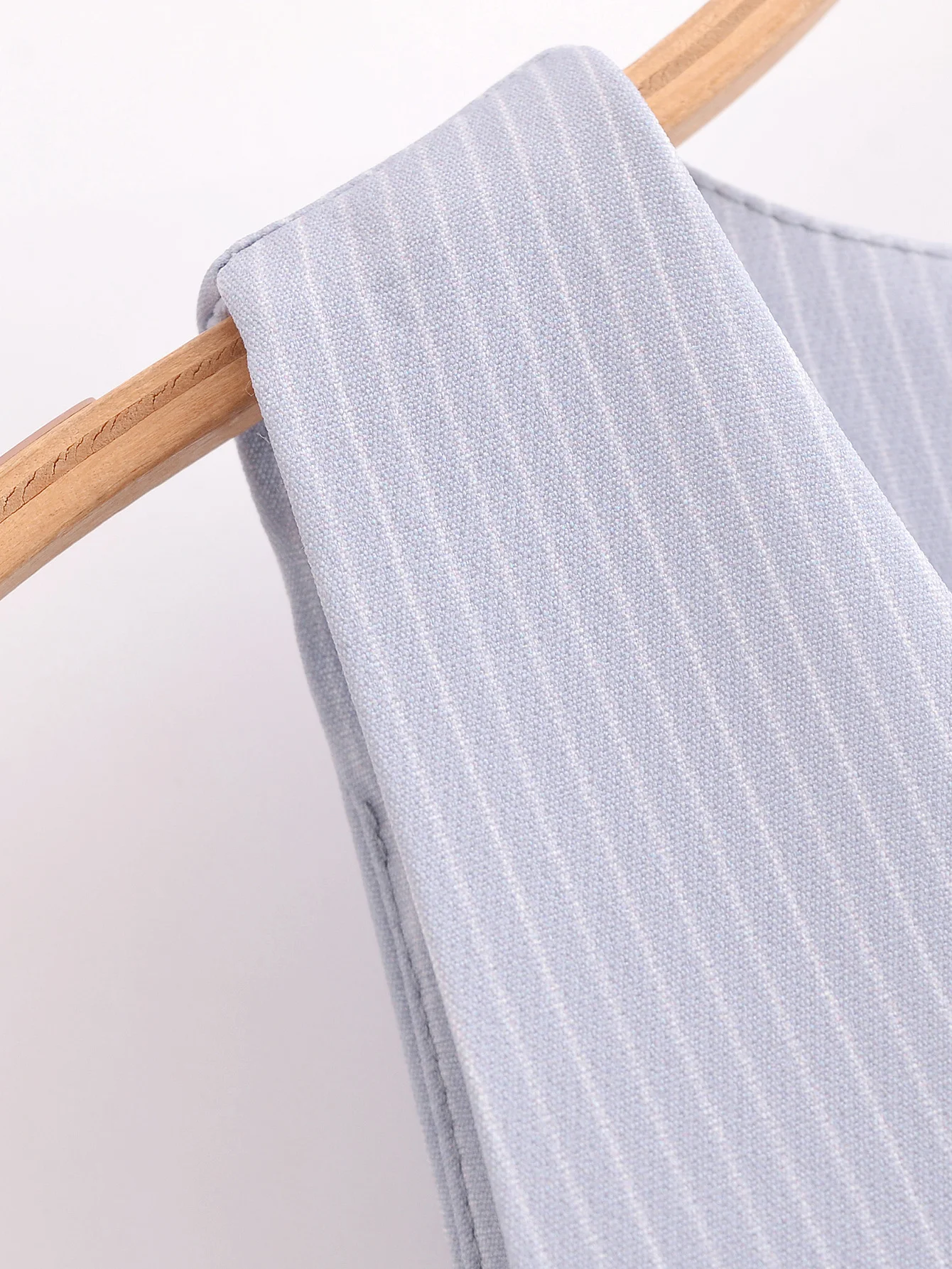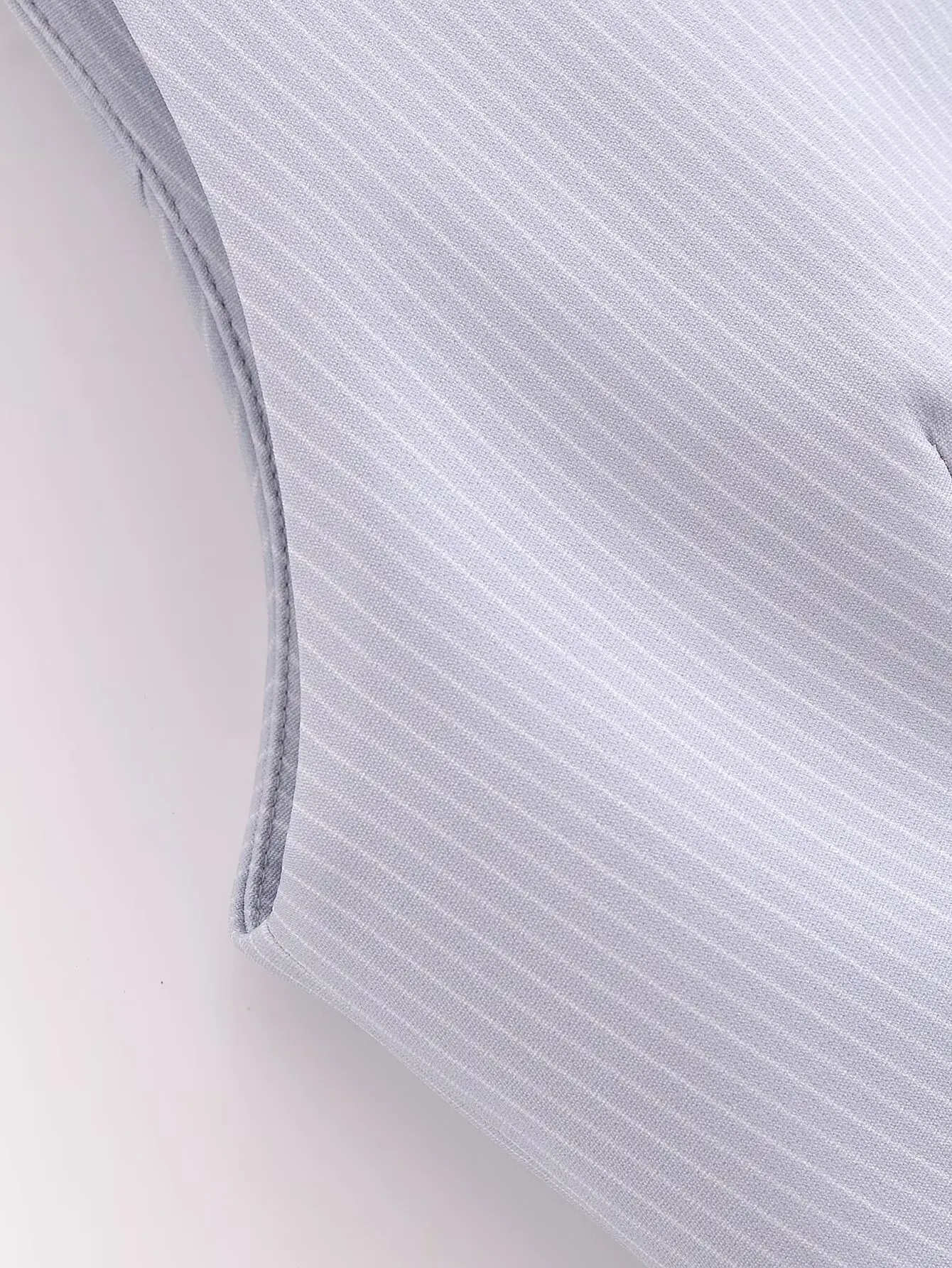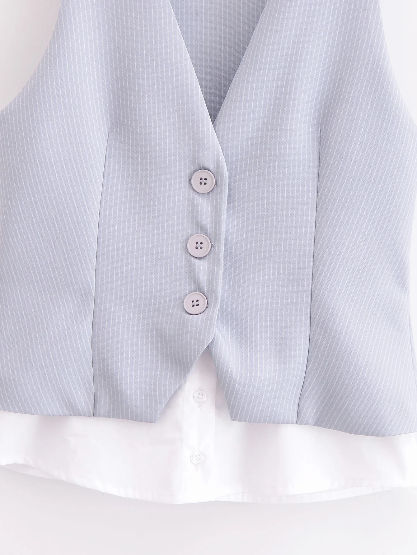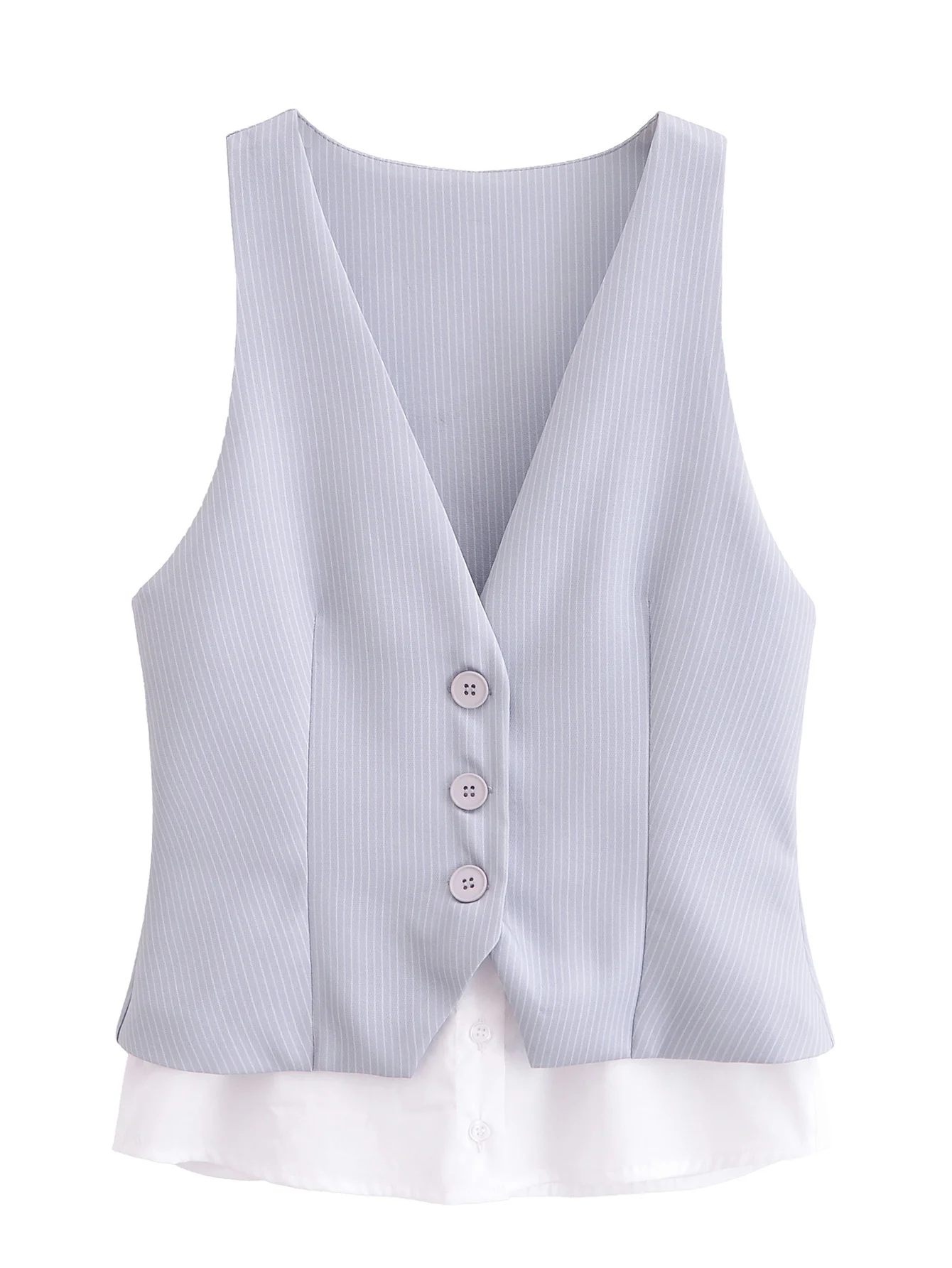 2025 Women Patchwork Striped Temperament Vest Front Button V Neck Sleeveless