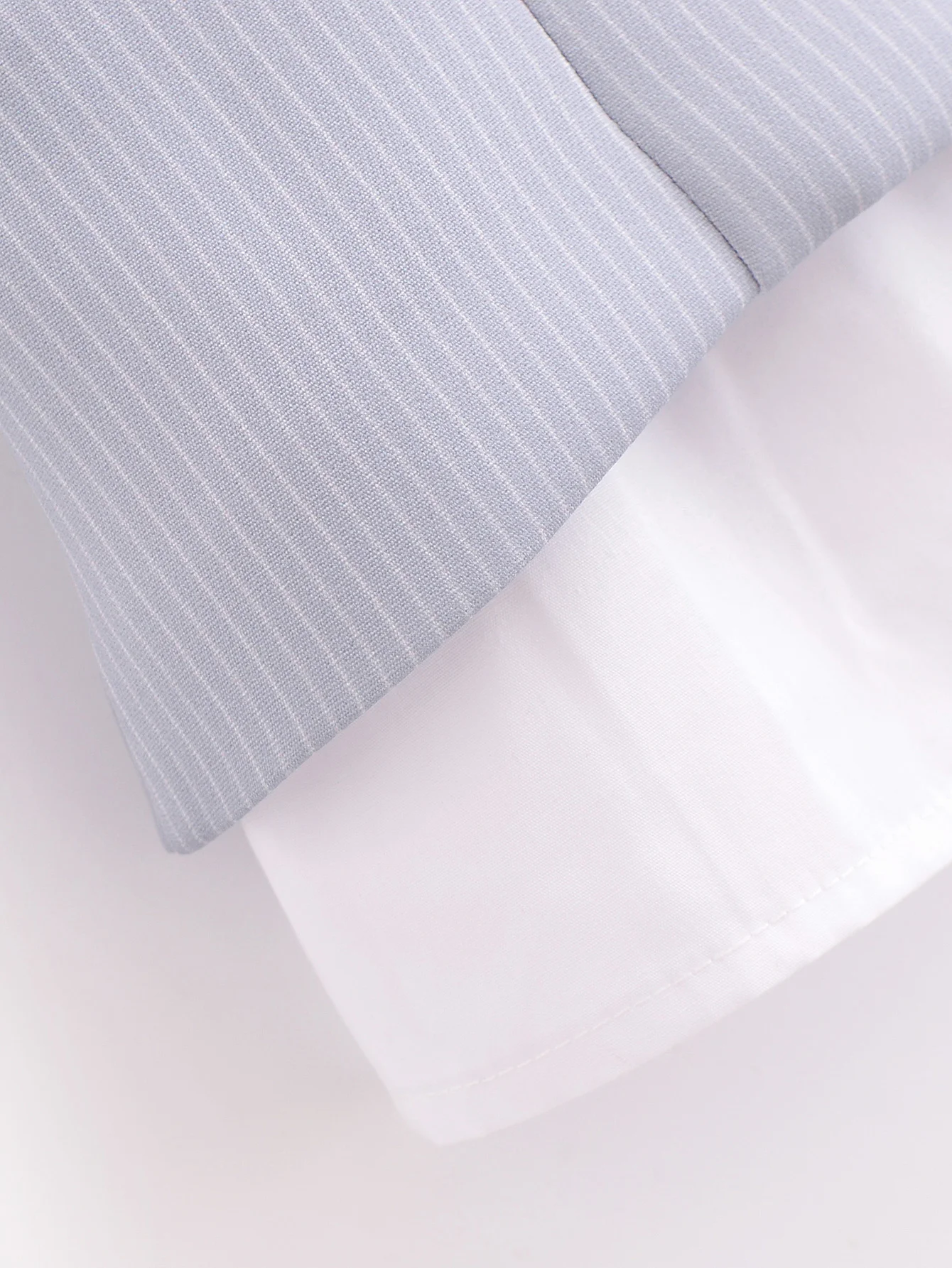 Women Patchwork Striped Temperament Vest Front Button V Neck Sleeveless Waistcoat Spring Summer Chic Tops