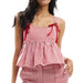 Women Plaid Tank Tops Spaghetti Strap Square Neck Peplum Cami Top Ruffle Smocked Going Out Camisole