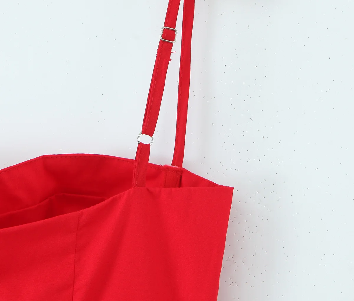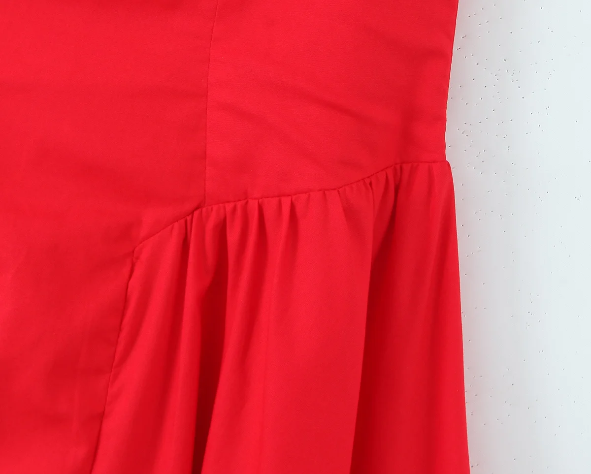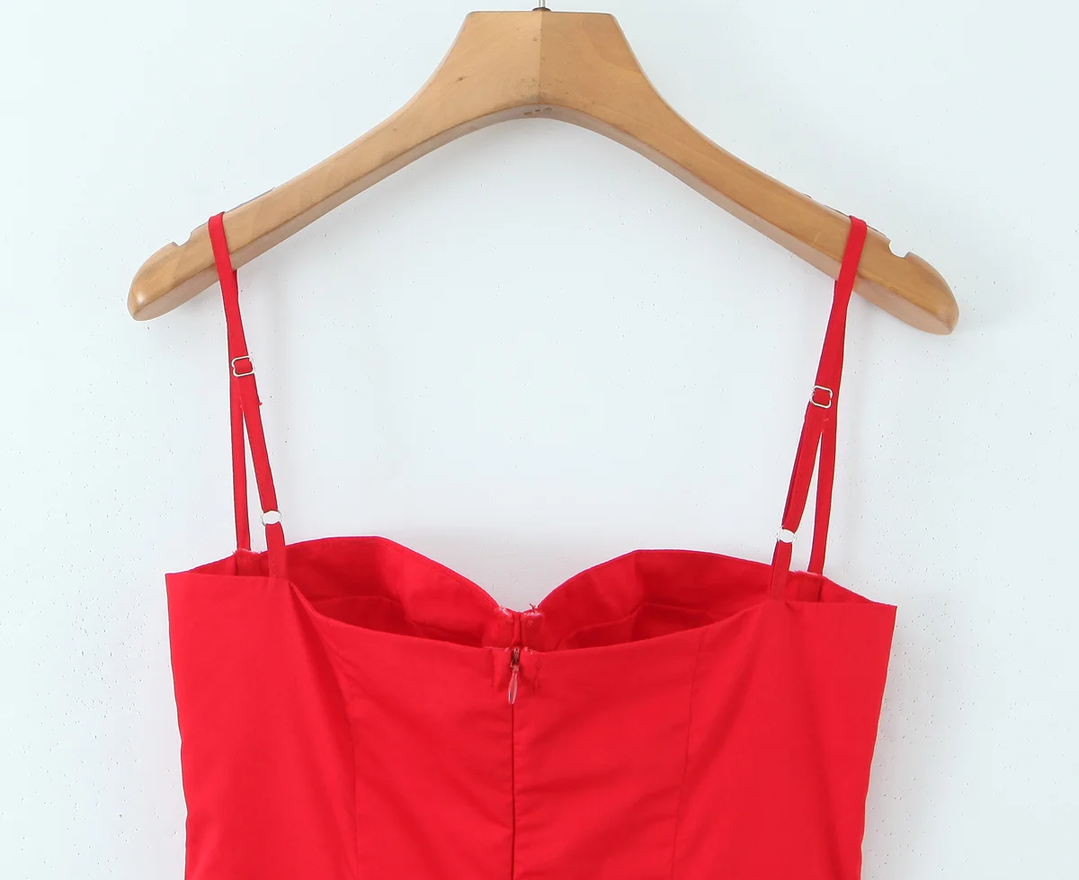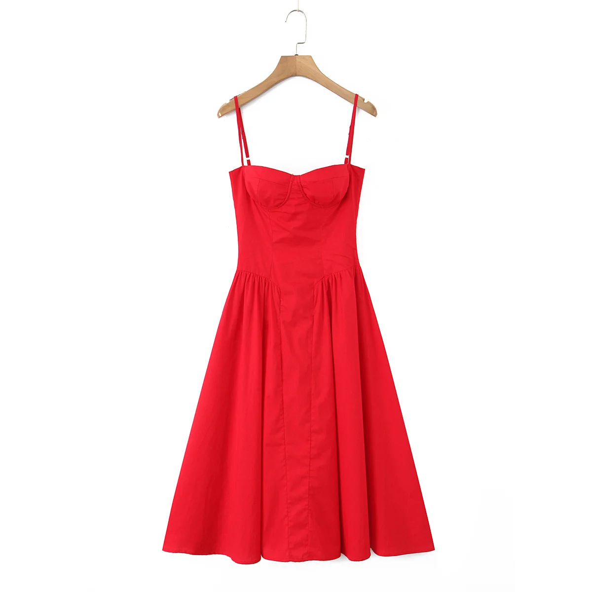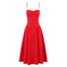 Women Sexy Spaghetti Straps Red Evening Party Dresses Pretty Girl Low Waist Flare And Flare Birthday Dresses Cotton