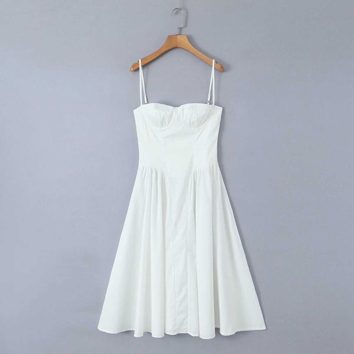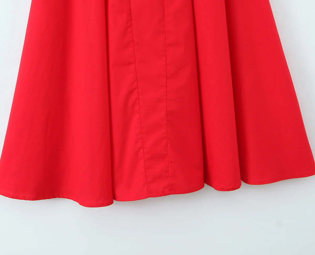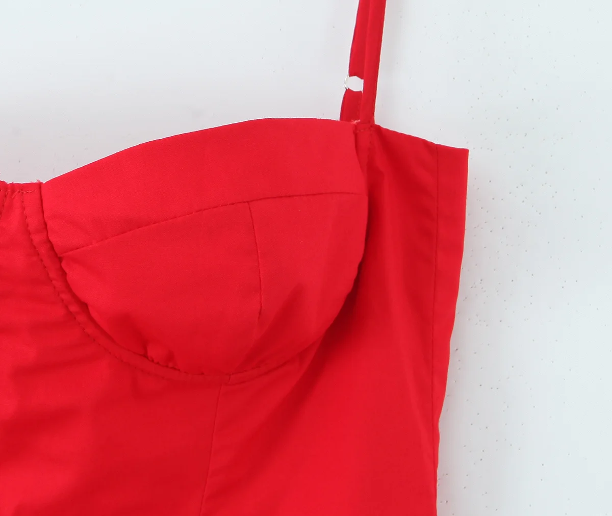 Women Sexy Spaghetti Straps Red Evening Party Dresses Pretty Girl Low Waist Flare And Flare Birthday Dresses Cotton
