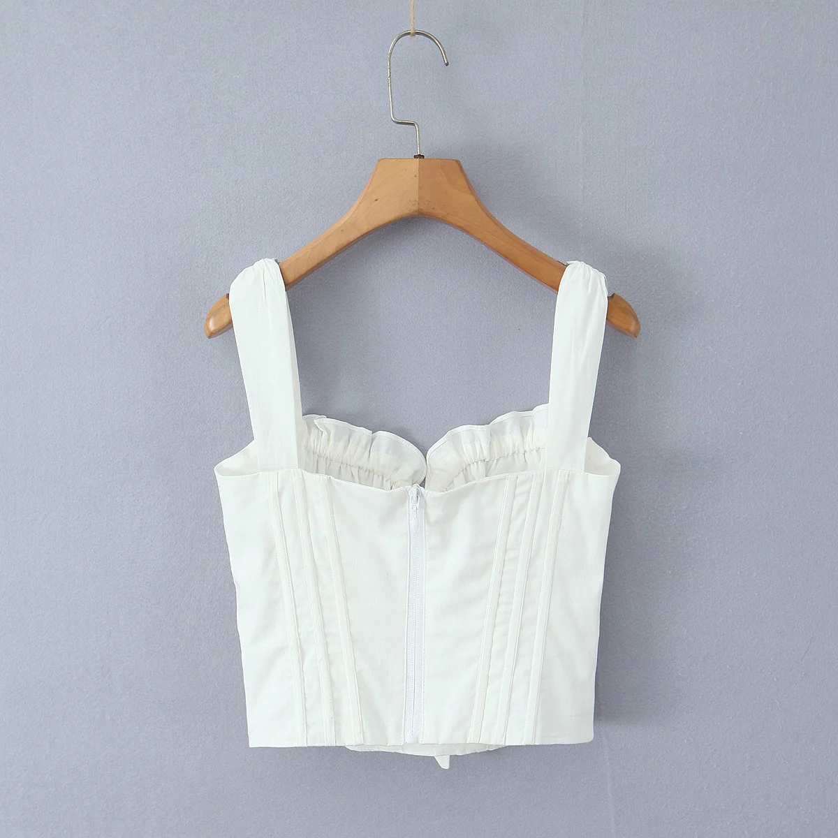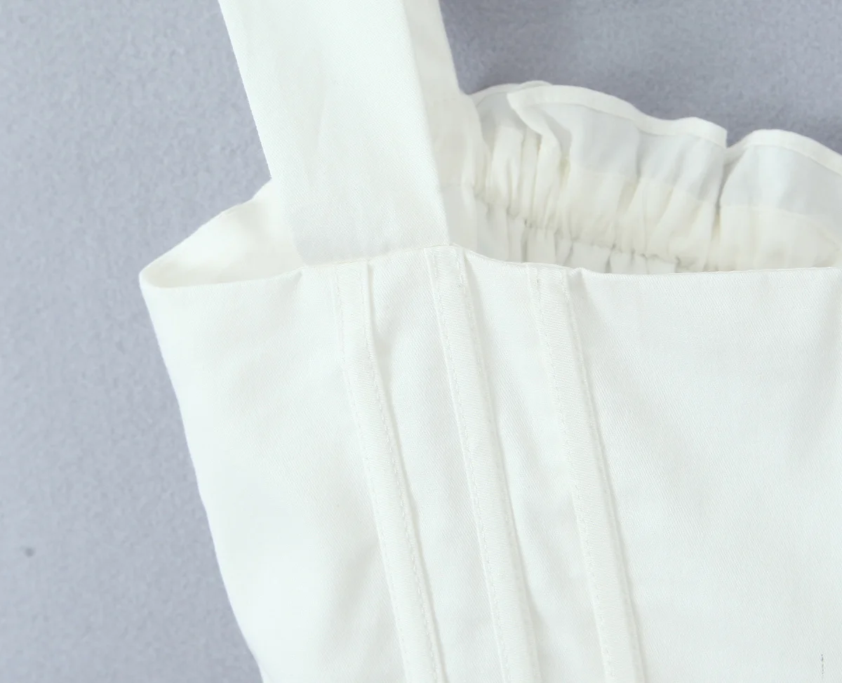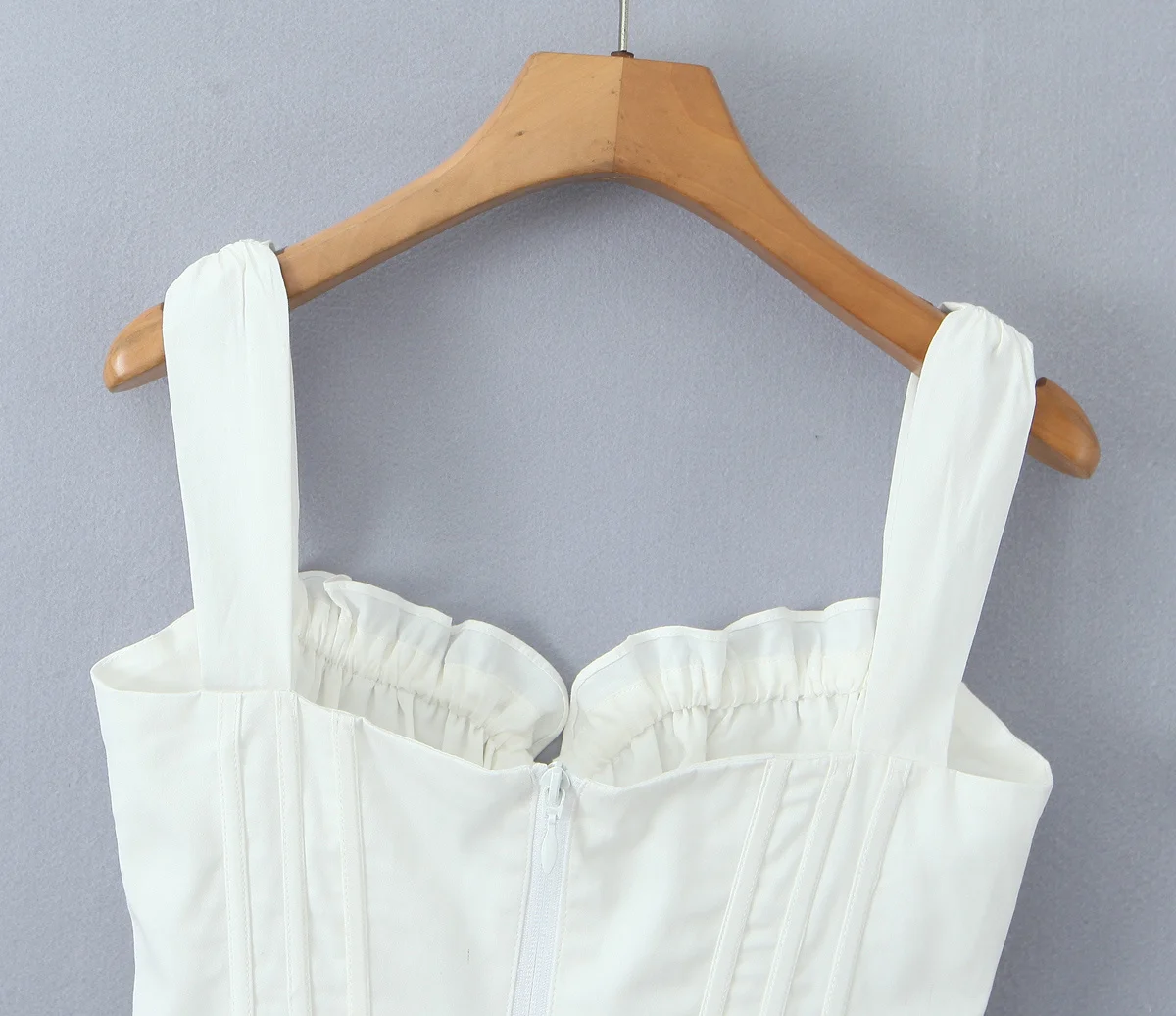 Women White Camisole Corset Tops Fitted Slim Cotton Summer Top Sexy Going Out Bodyshaper Bustier Tank Top