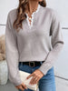 Women's Lace V-neck Long Sleeve Knitted Sweater Autumn Winter Warm Fashionable Knitwear for Ladies