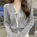 Women's Pointelle Knit Cardigan with Bow Long Sleeve Button Front Sweater Openwork Cardi Teen-girl Fairycore Balletcore Outfit