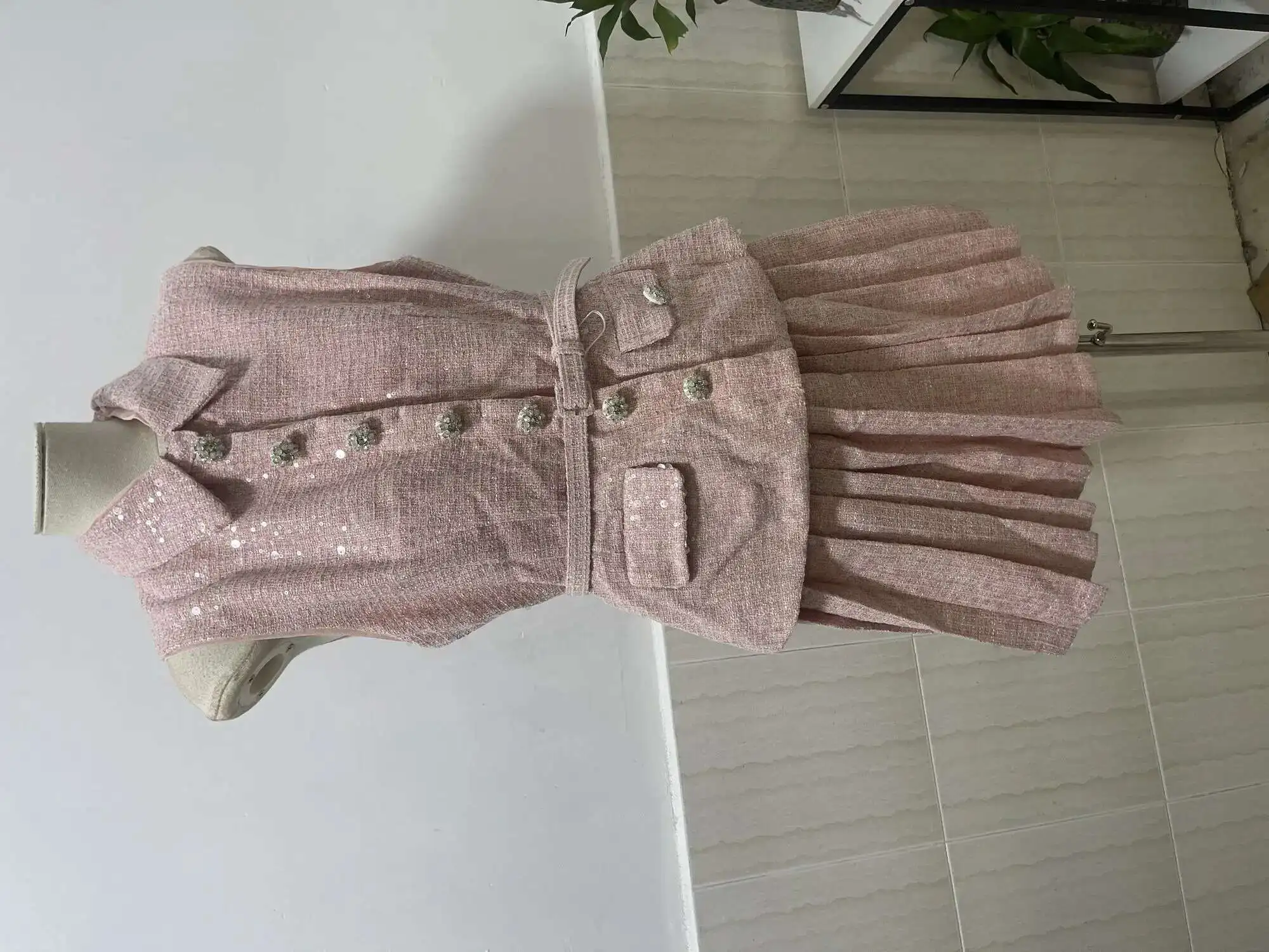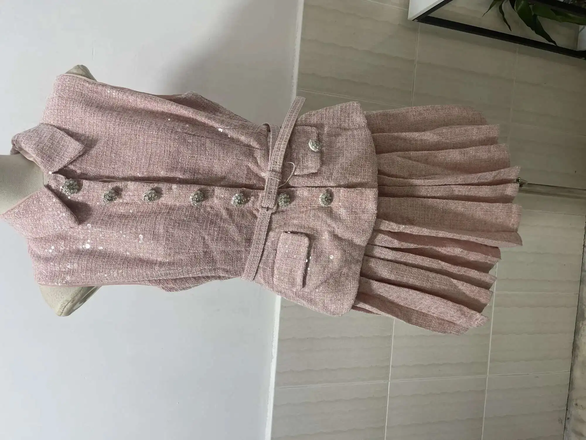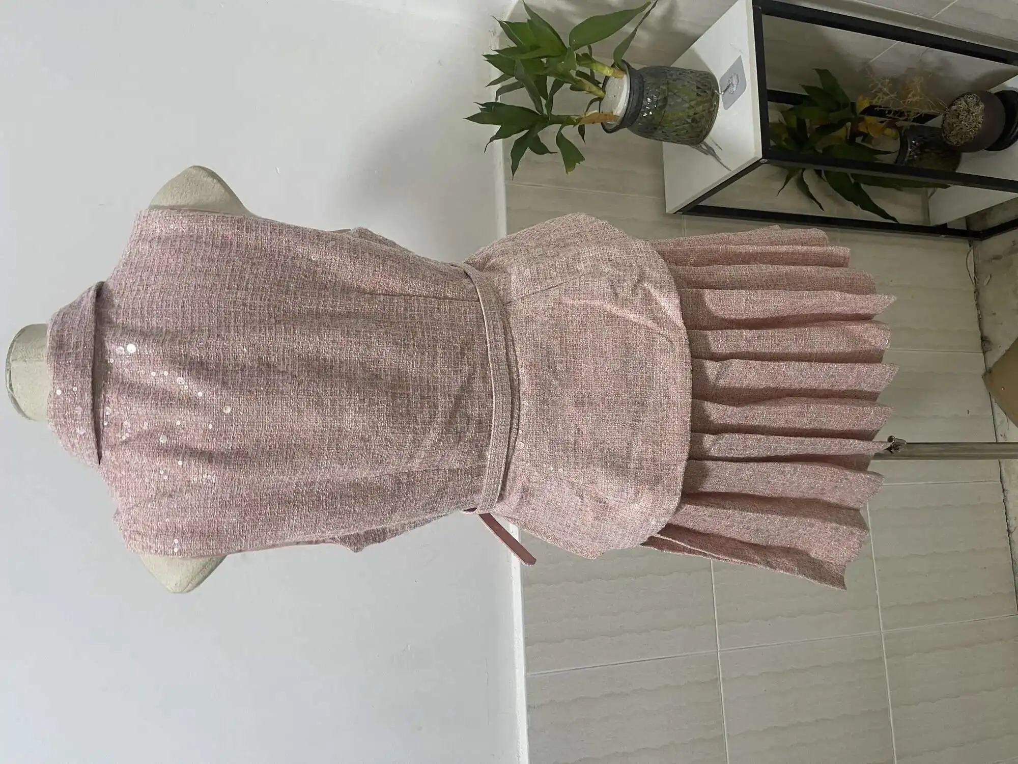 Women's Tweed Sequins Spliced 2 Pcs Set Lapel Lace-up Sleeveless Belt Coat Pleated Mini Skirts Set 2025 New Tide
