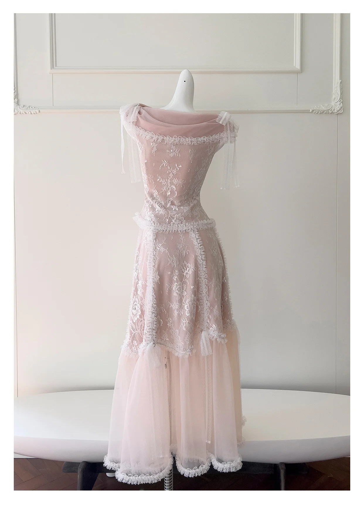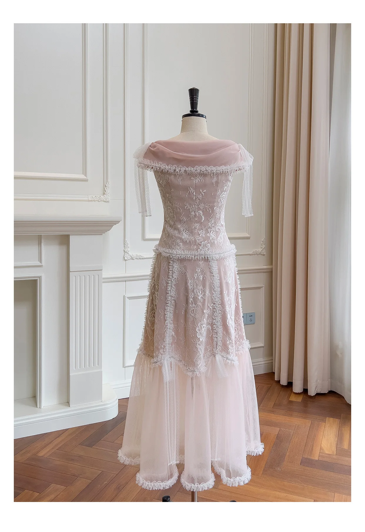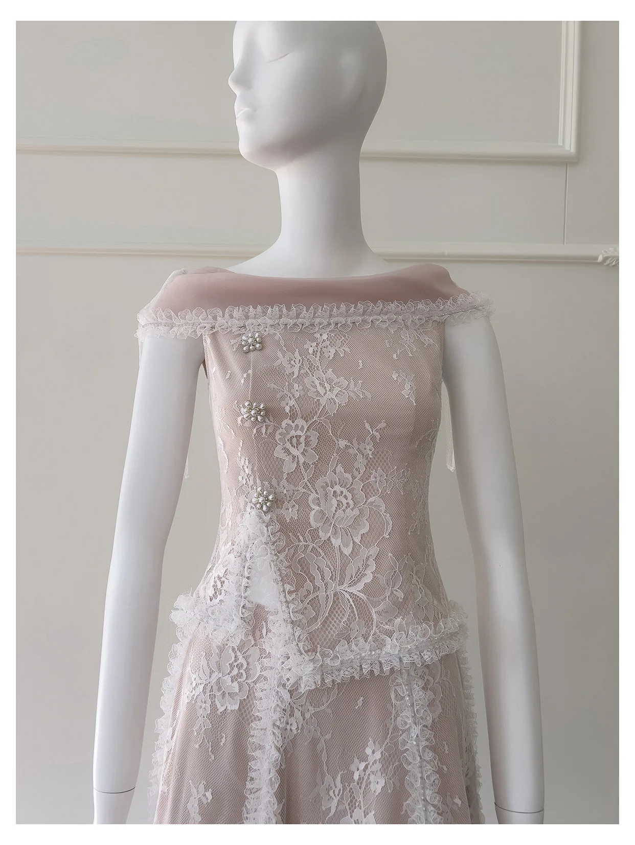 Women's Two Piece Set Lace Patchwork Ear Fungus Edge Design Top+ High Waist Skirt Female Sets New Tide 3QW0560