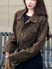 Y2K Cropped Leopard Denim Jacket Women Vintage Streetwear Long Sleeve Slim Short Coat American Harajuku Female Hip Hop Tops