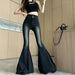 Y2K Vintage Raw Edge Flare Jeans Women Korean High Waist Slim Denim Pants Solid Hip Hop Streetwear All Match Wide Leg Trousers