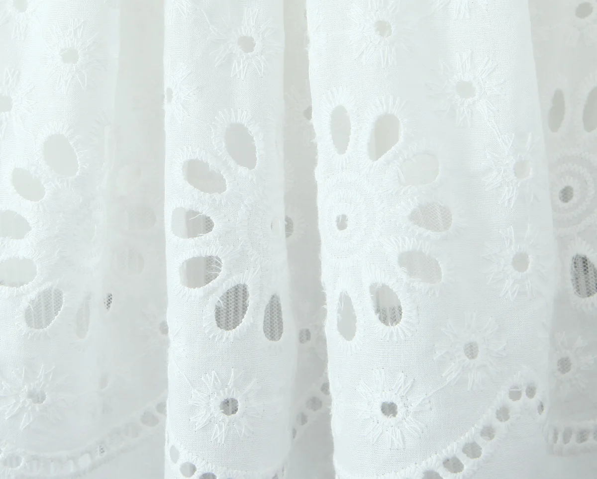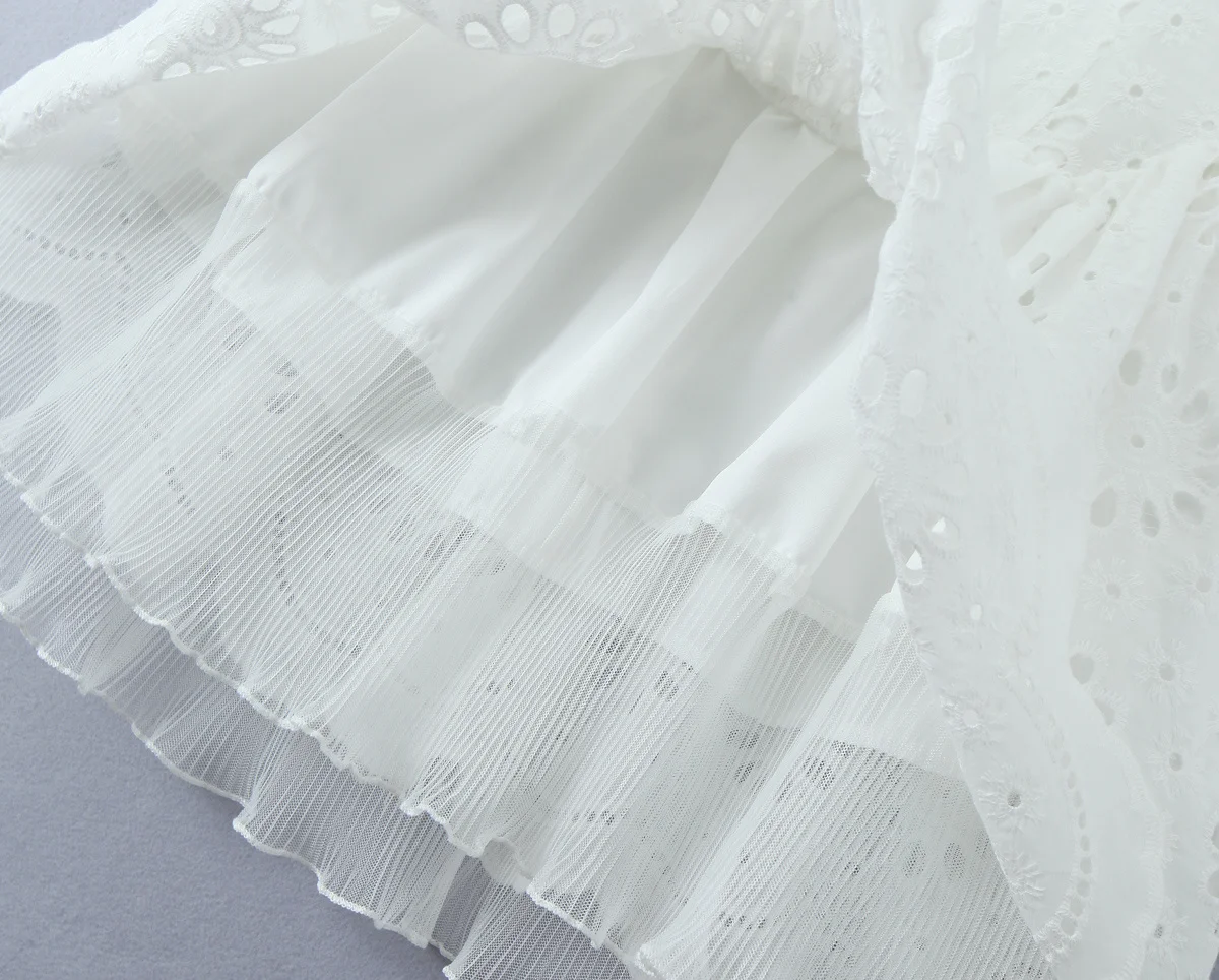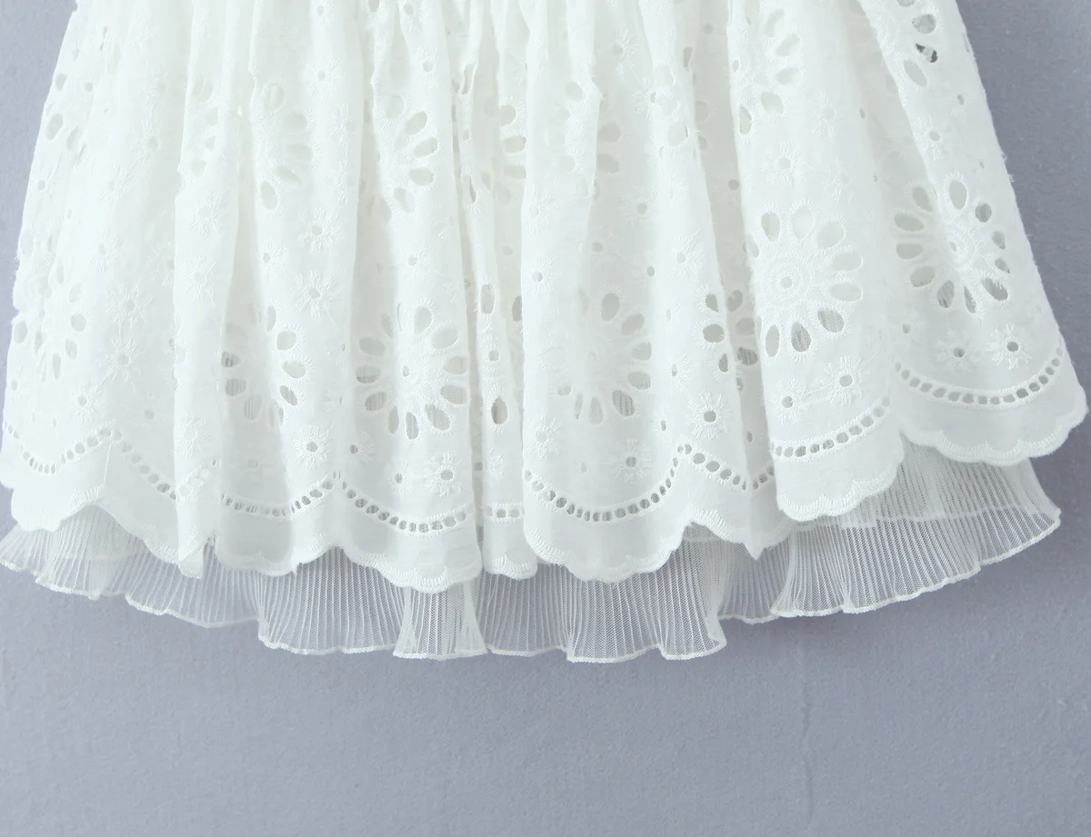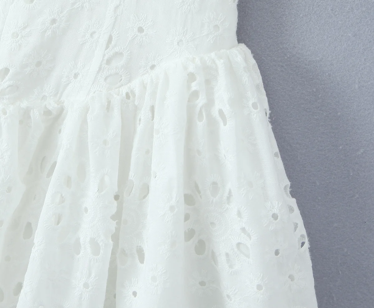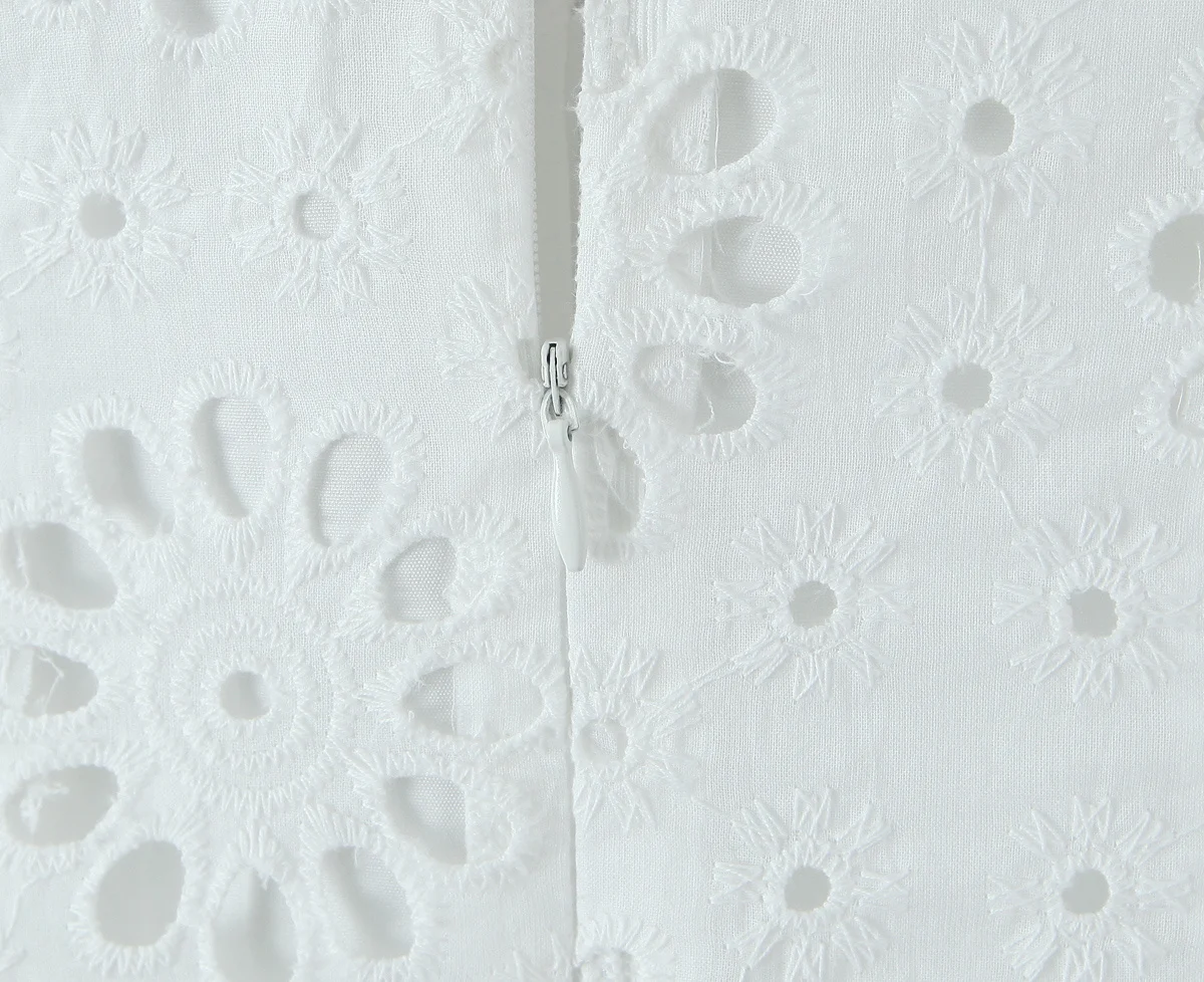 French Style Sexy Backless Halter Dress For Women Hollow Out Embroidery White