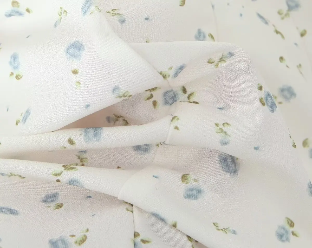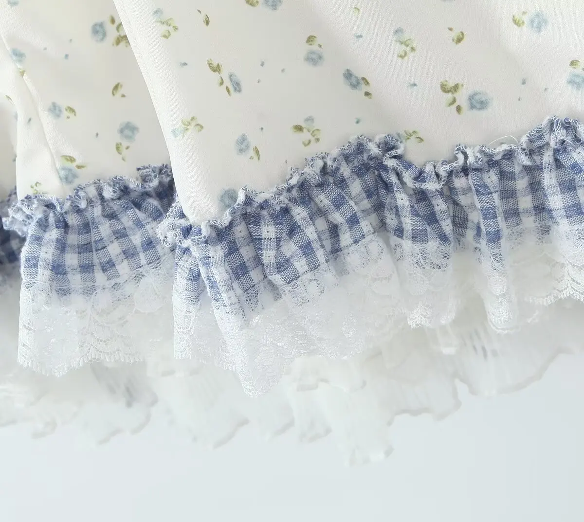 High Quality Women Vintage Drawstring Lace Trim Floral Print Mini Dress Puff Sleeve Ruffle Hem Summer Female Party Robe