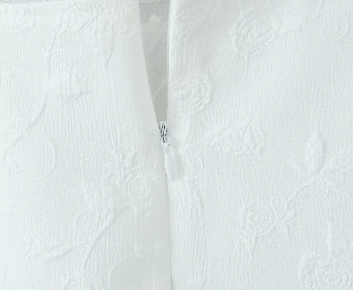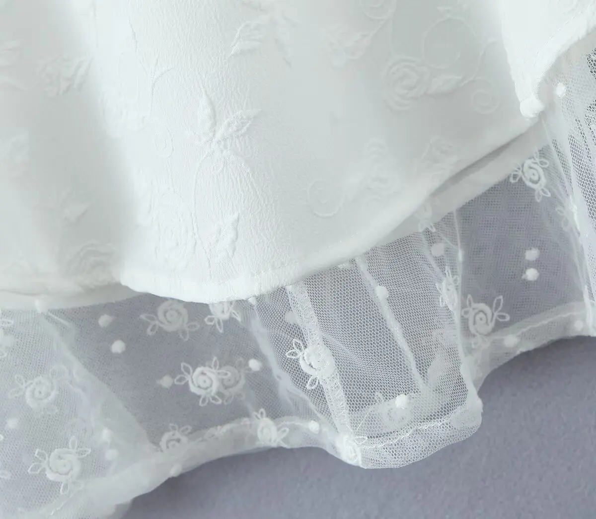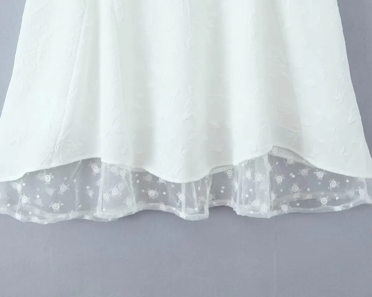 New 2025 Mesh Patchwork White A-line Midi Skirt Women Back Swing Holiday