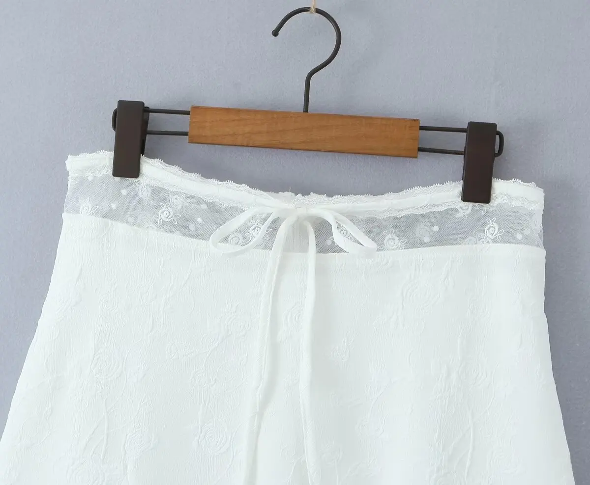 New 2025 Mesh Patchwork White A-line Midi Skirt