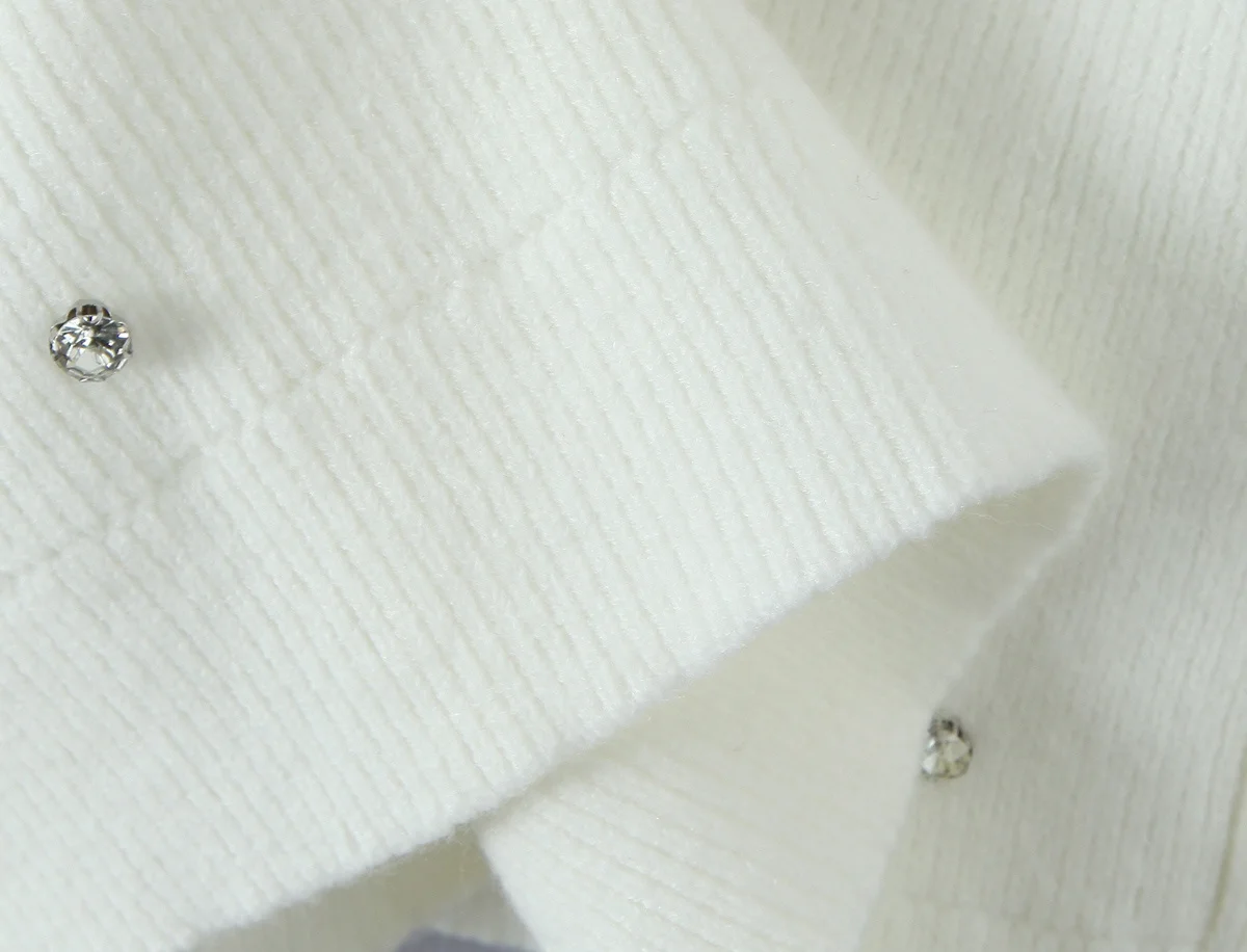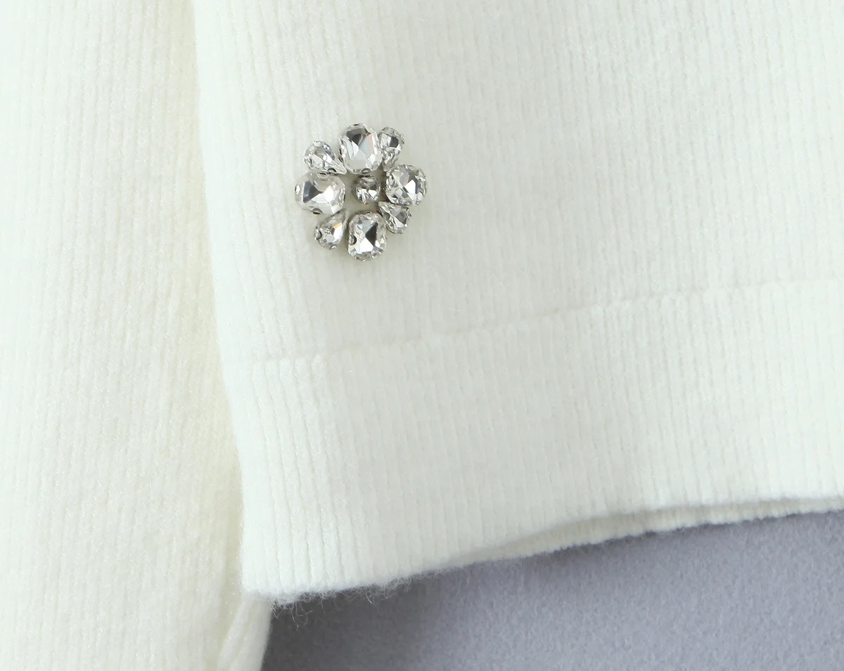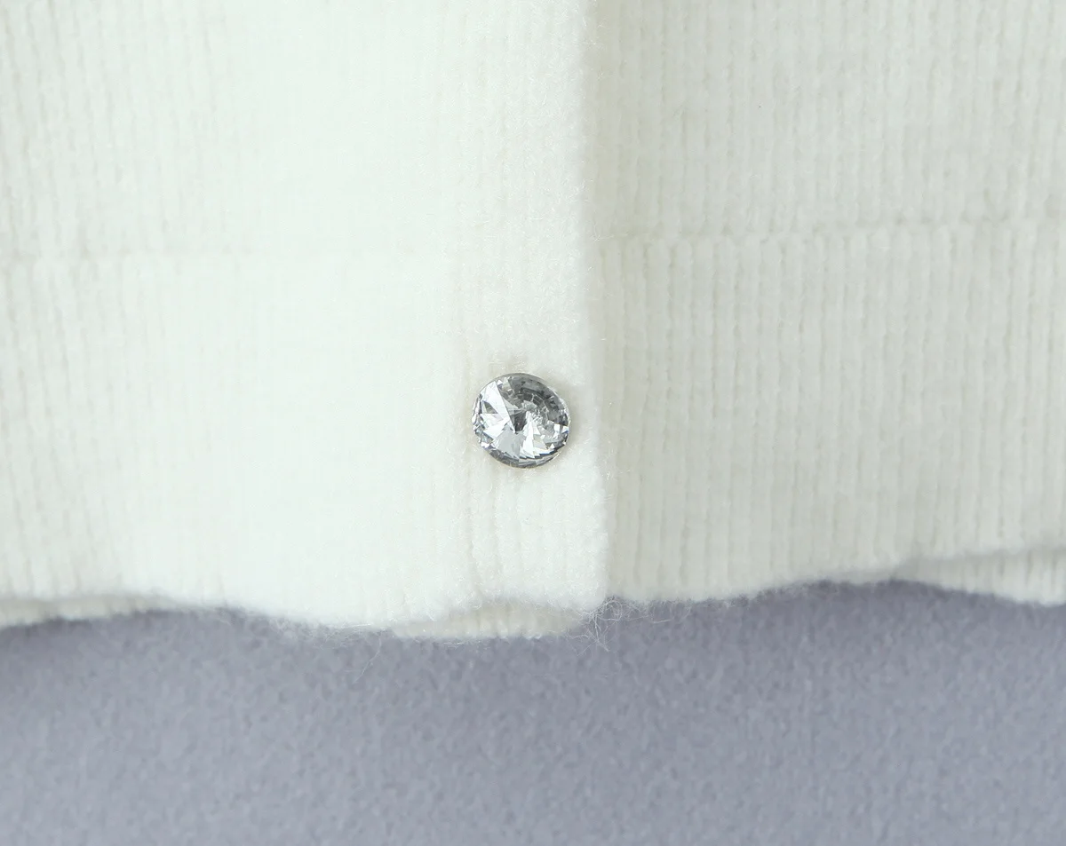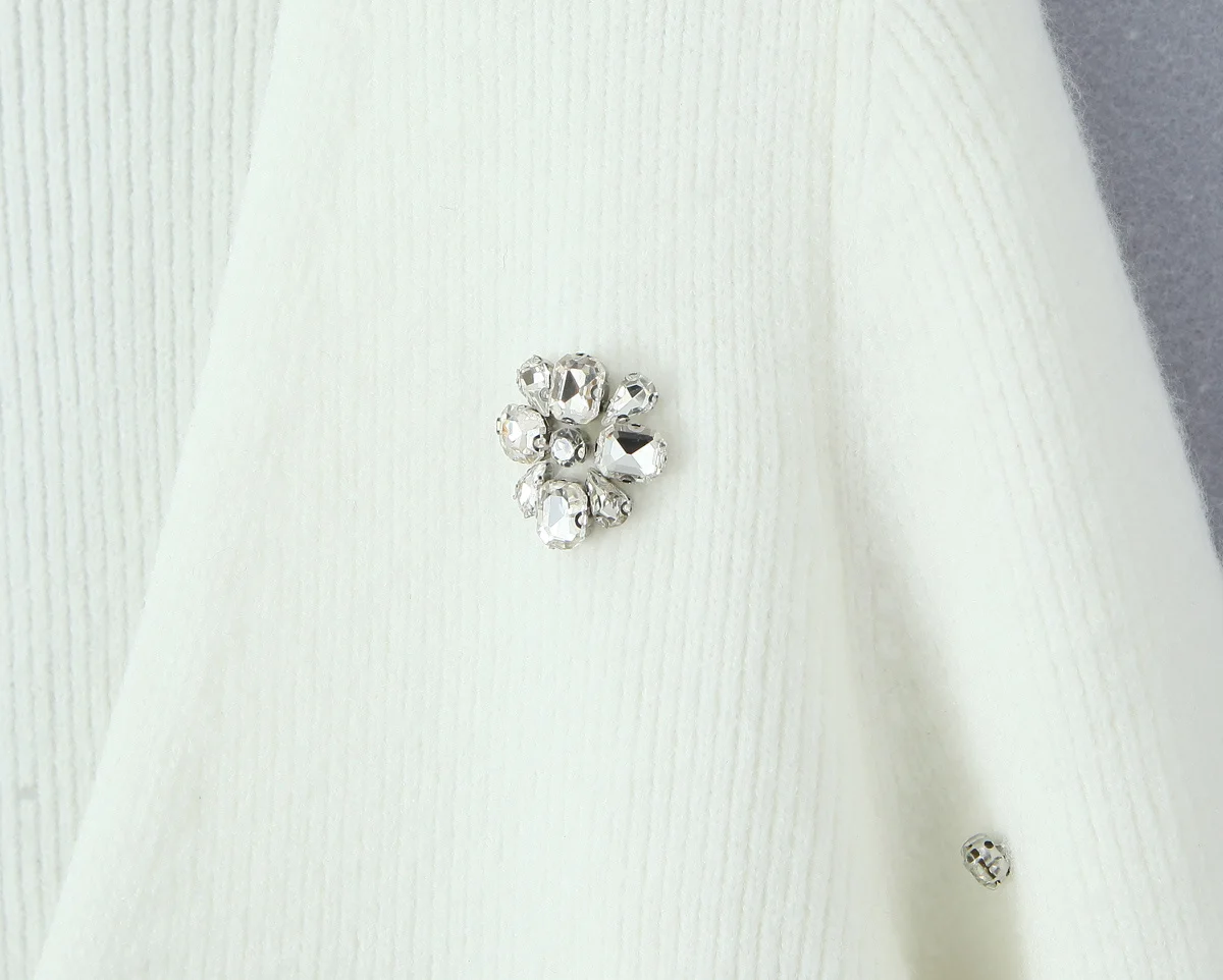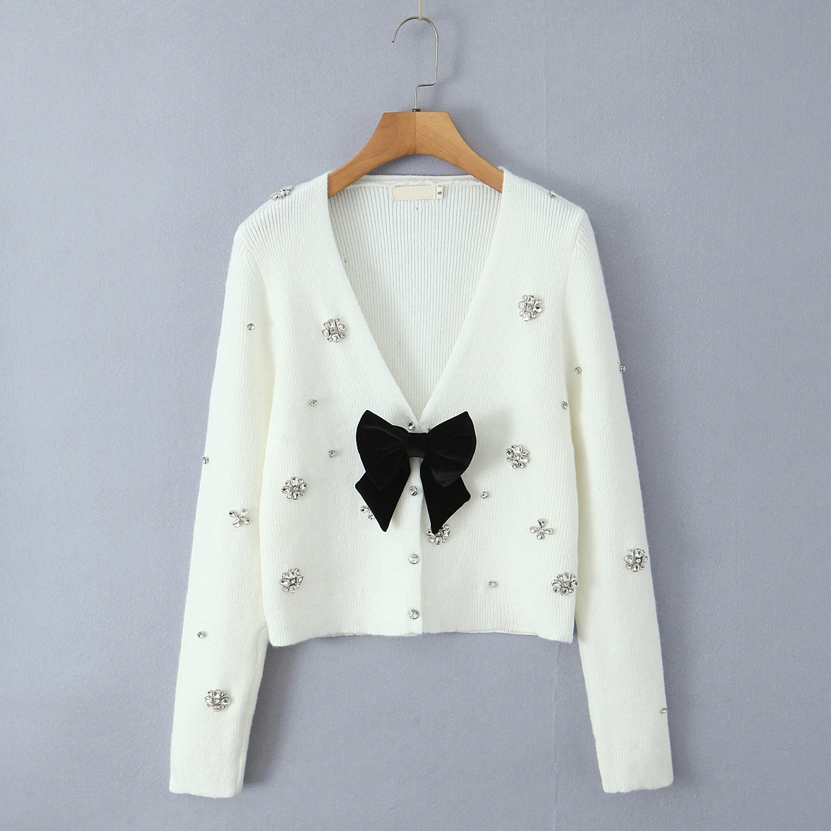 New Women Fashion Handmade Diamond Bow Knit Cardigan Long Sleeve V Neck Slim Crop Sweater Elegant Coat Tops
