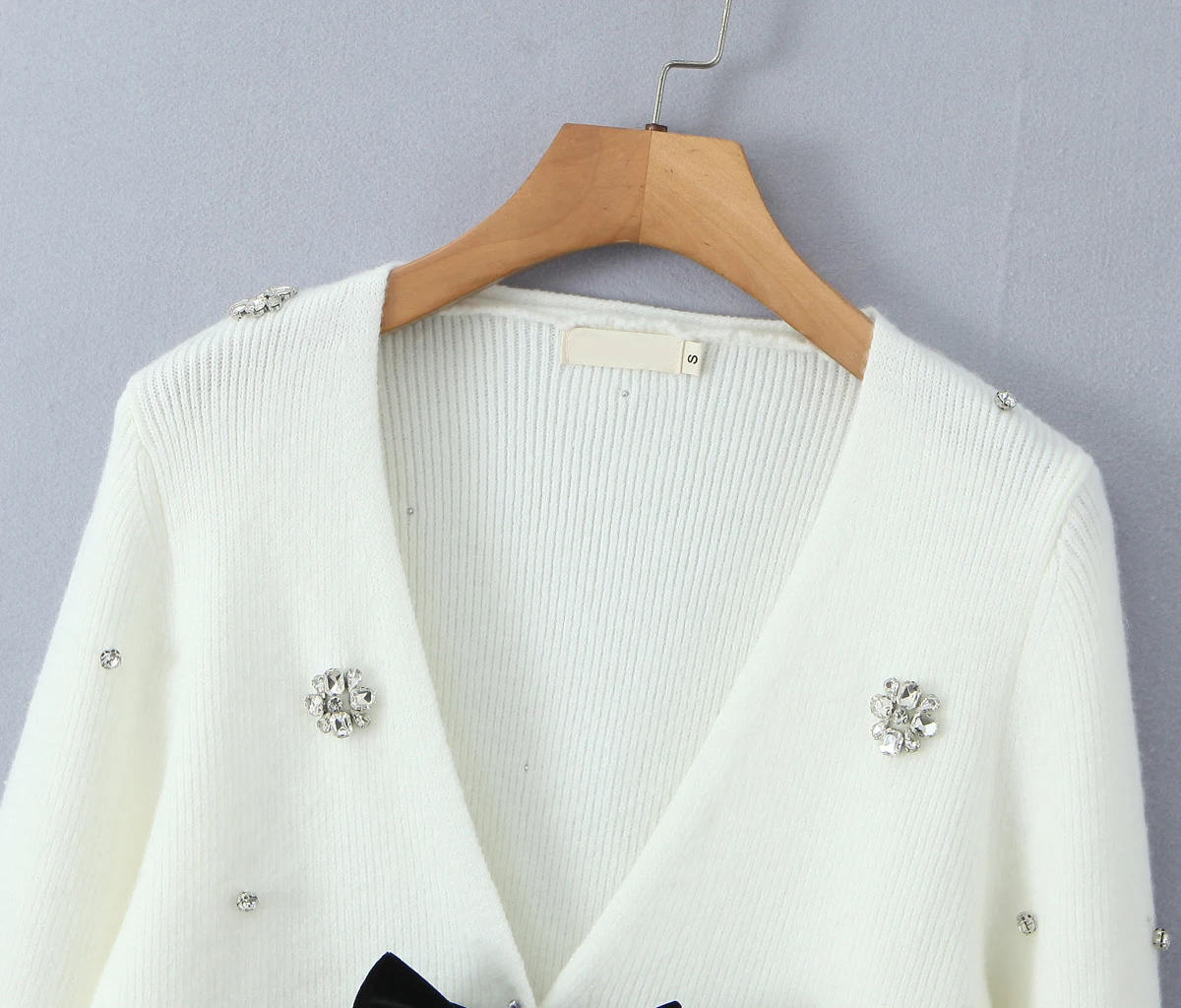 New 2025 Women Fashion Handmade Diamond Bow Knit Cardigan Long Sleeve V Neck
