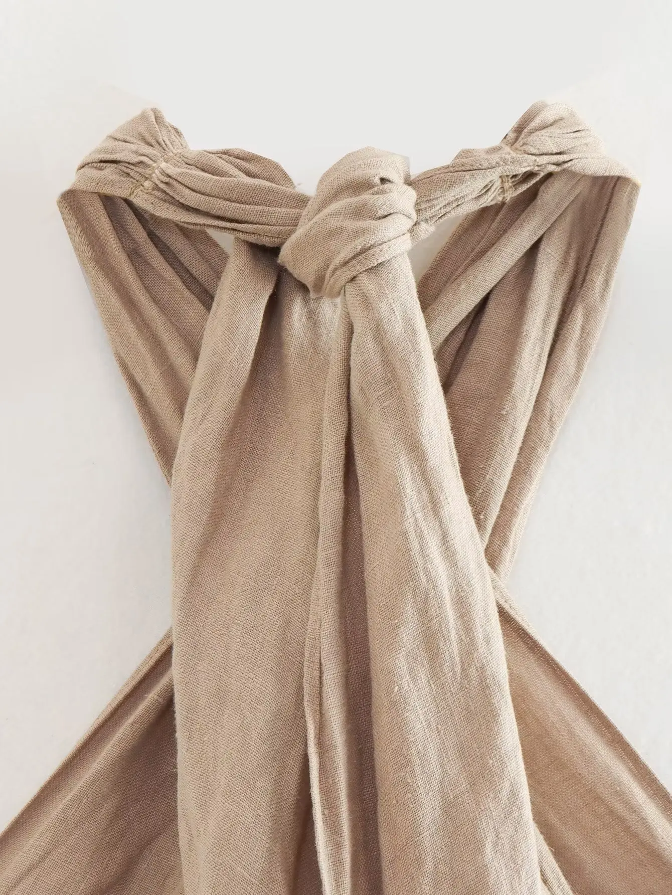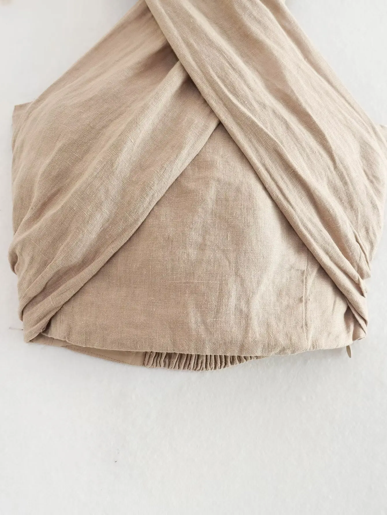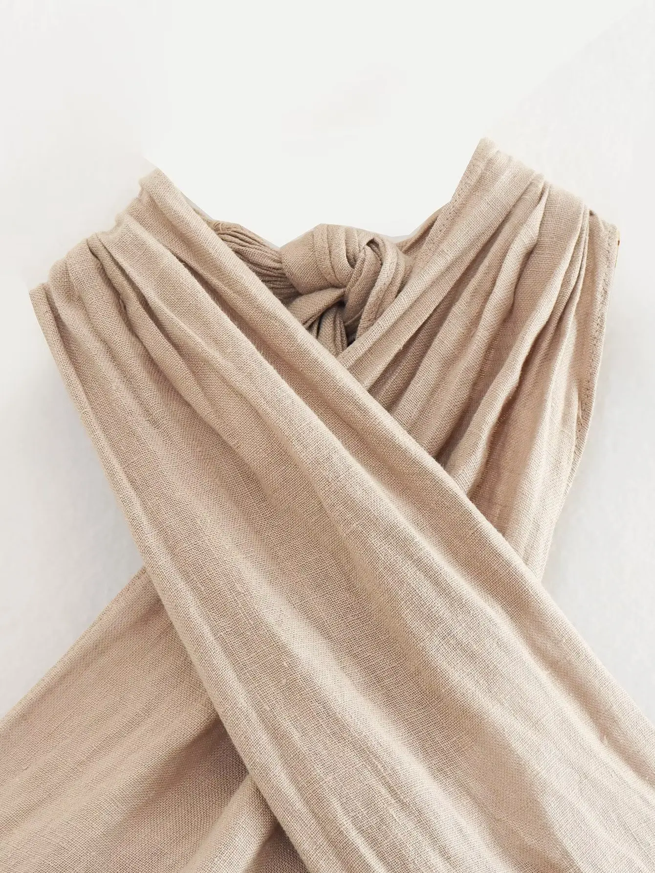New Fashion Women Sexy Backless Linen Halter Top Summer Crop Top