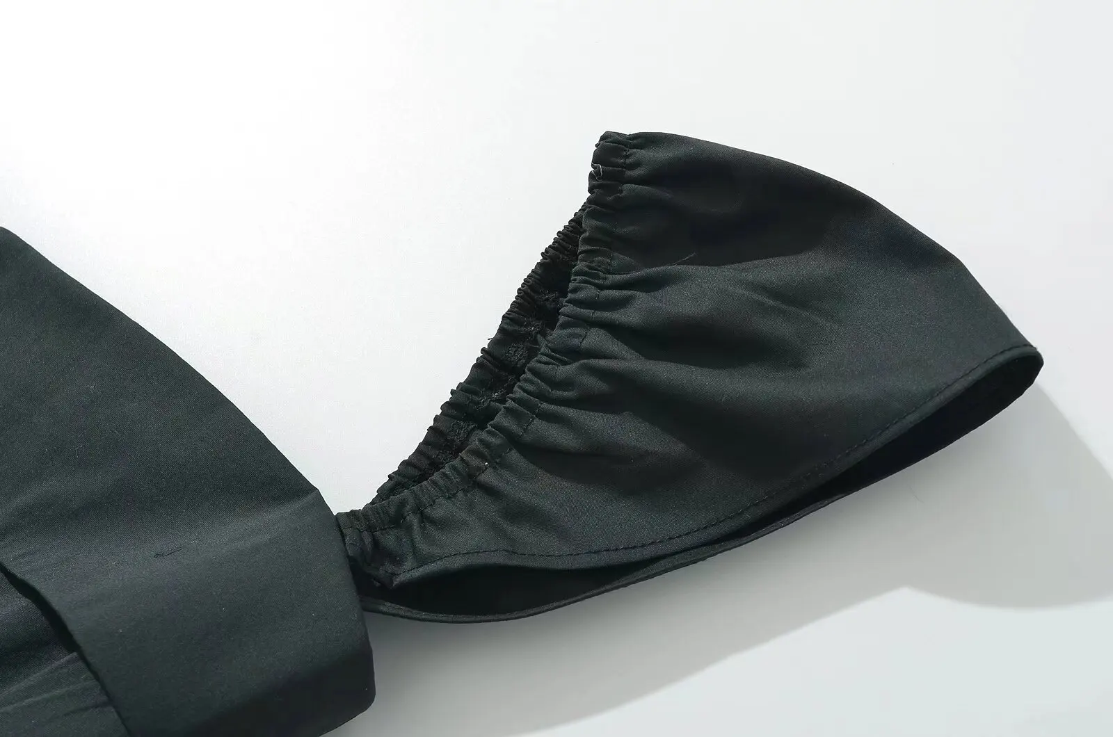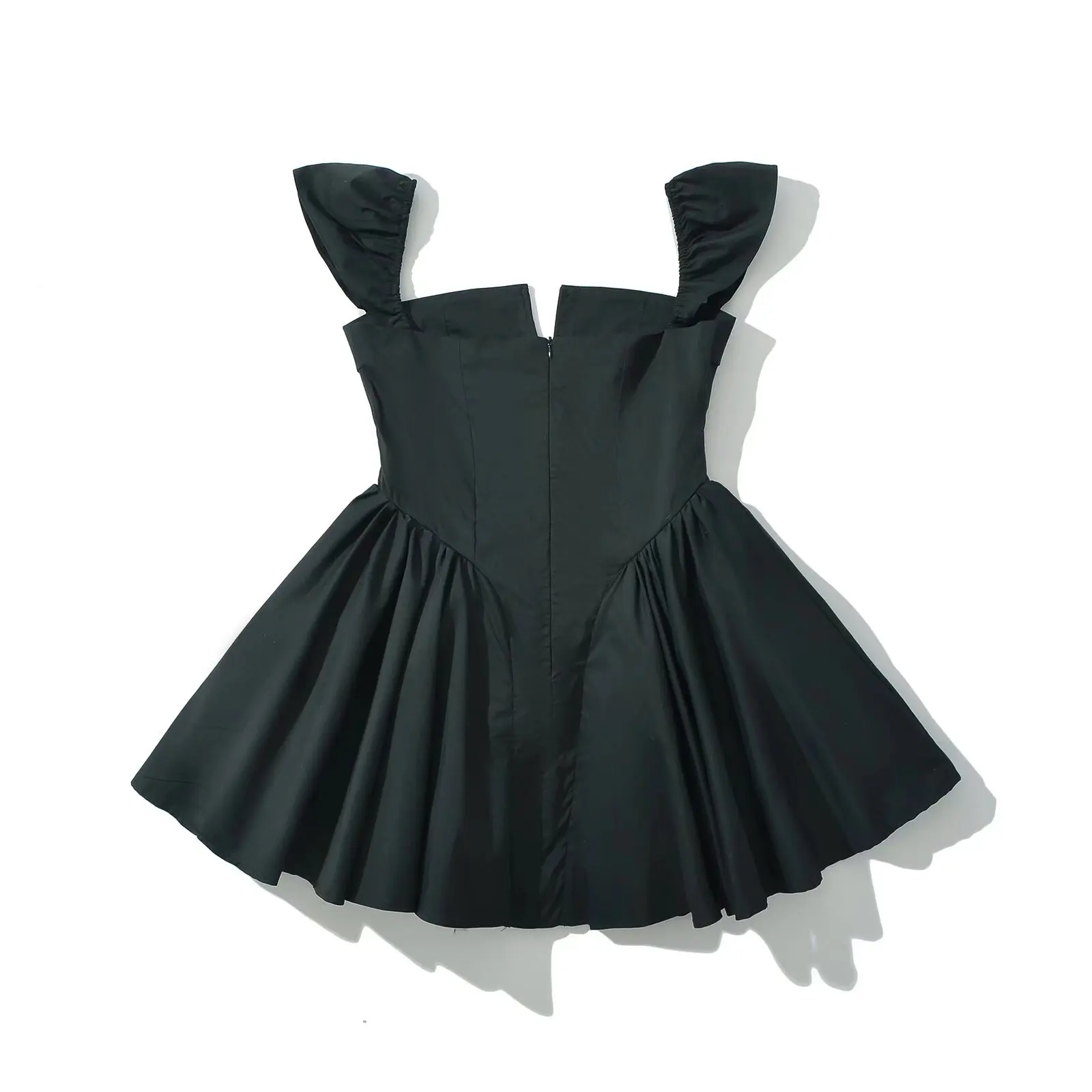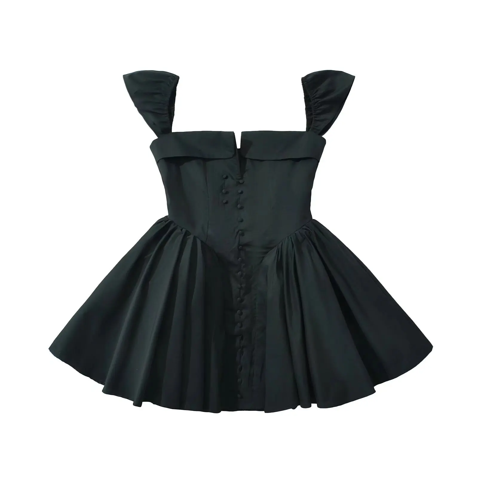 Sexy Women Front Slit Button Chic Fit Slim Black Mini Dresses Cape Short Sleeve Low Waist Elegant Evening Party Dresses