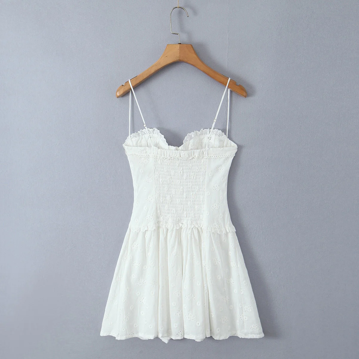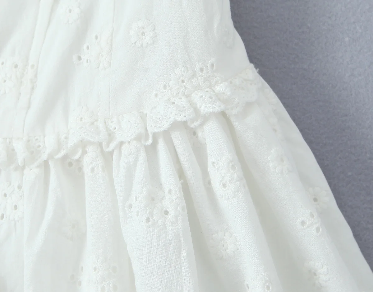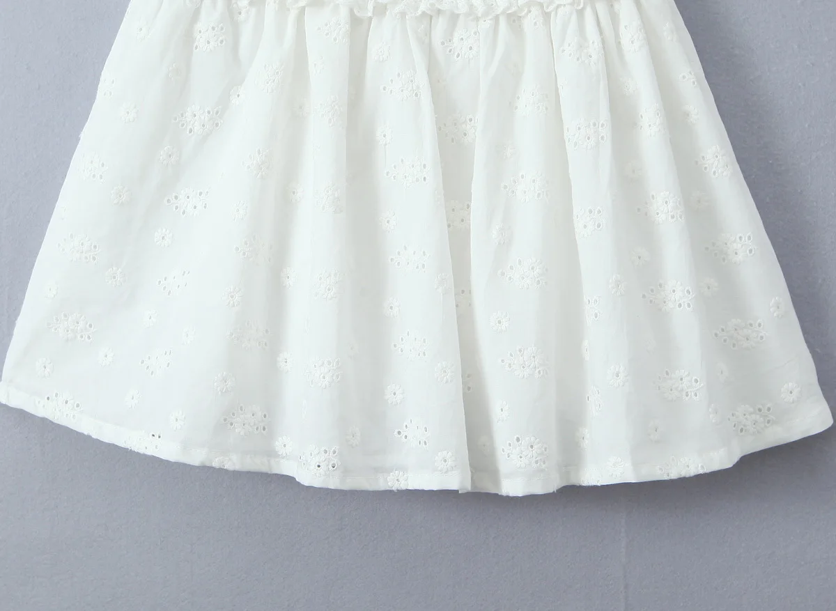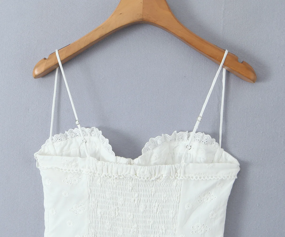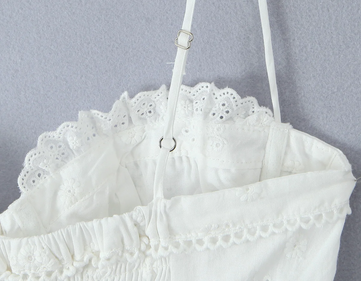 Summer Women Hollow Out Embroidery White Sling Mini Dress