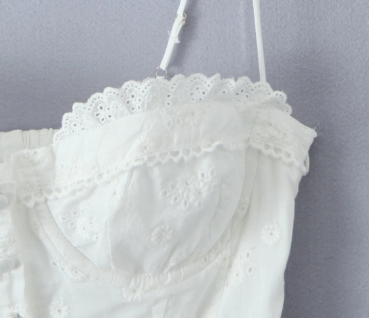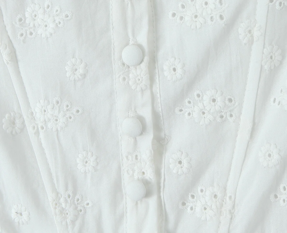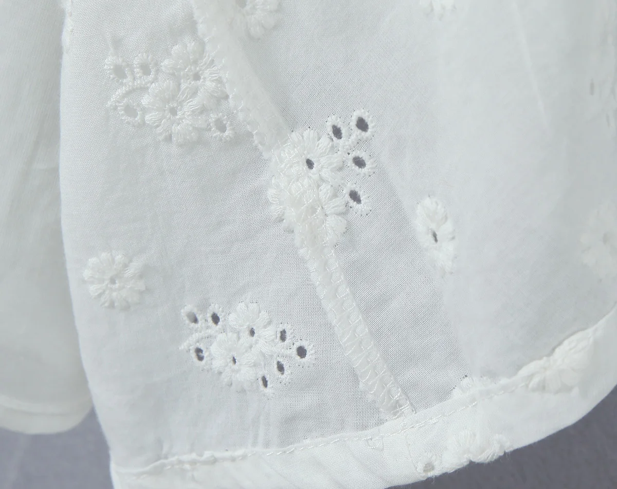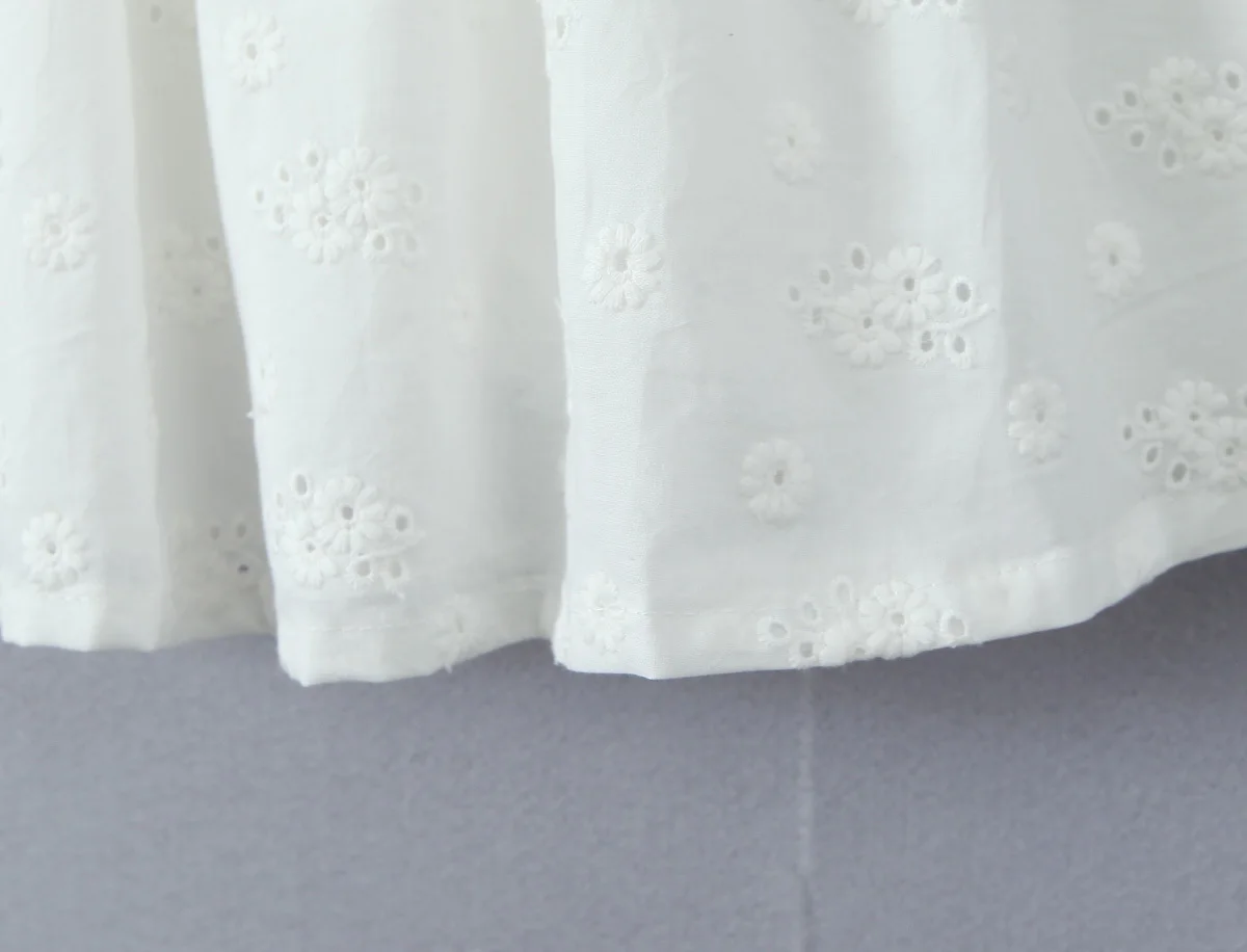 Summer Women Hollow Out Embroidery White Sling Mini Dress