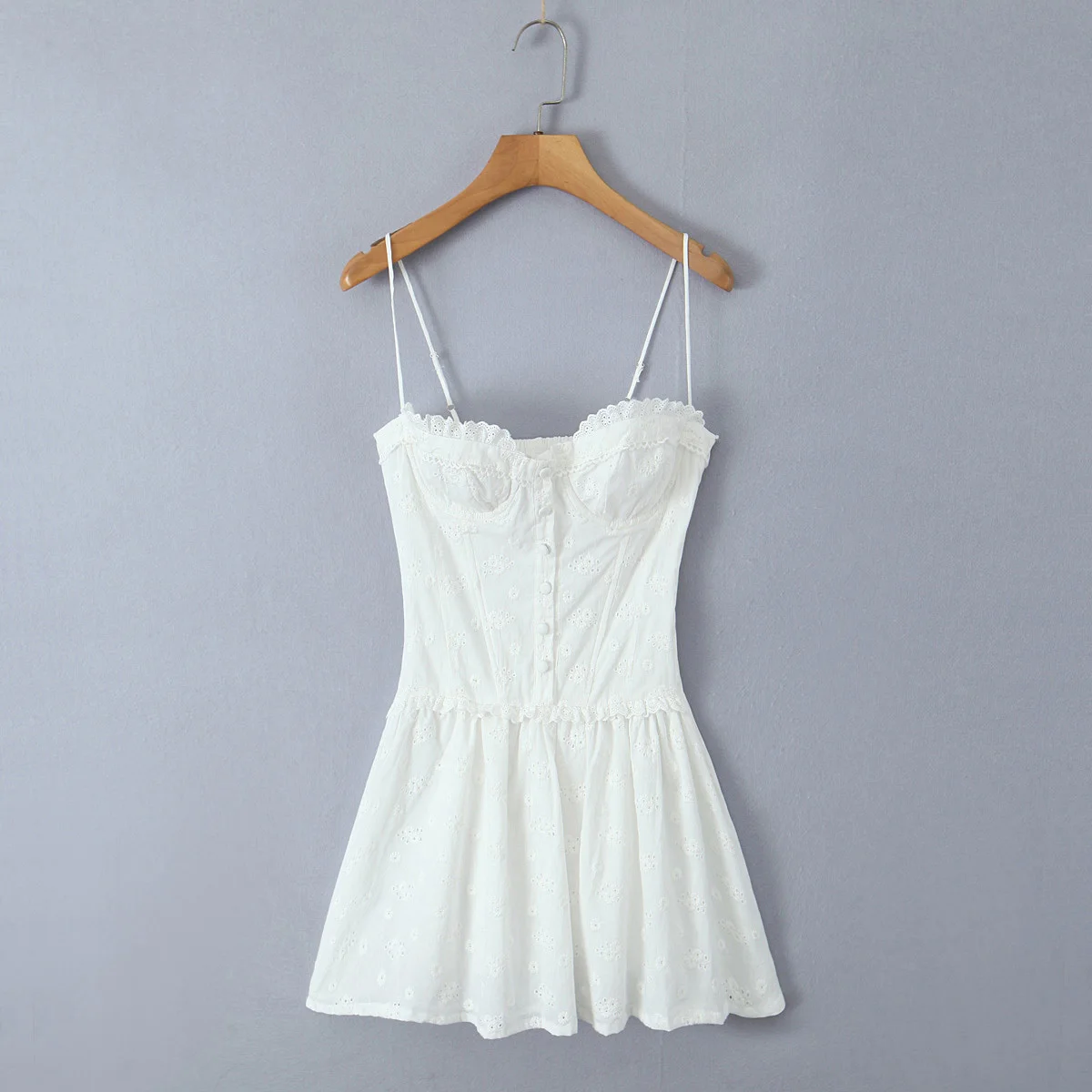 Summer Women Hollow Out Embroidery White Sling Mini Dress Bone Slim Low Waist Sexy Sweet Dresses Female Cotton Robe
