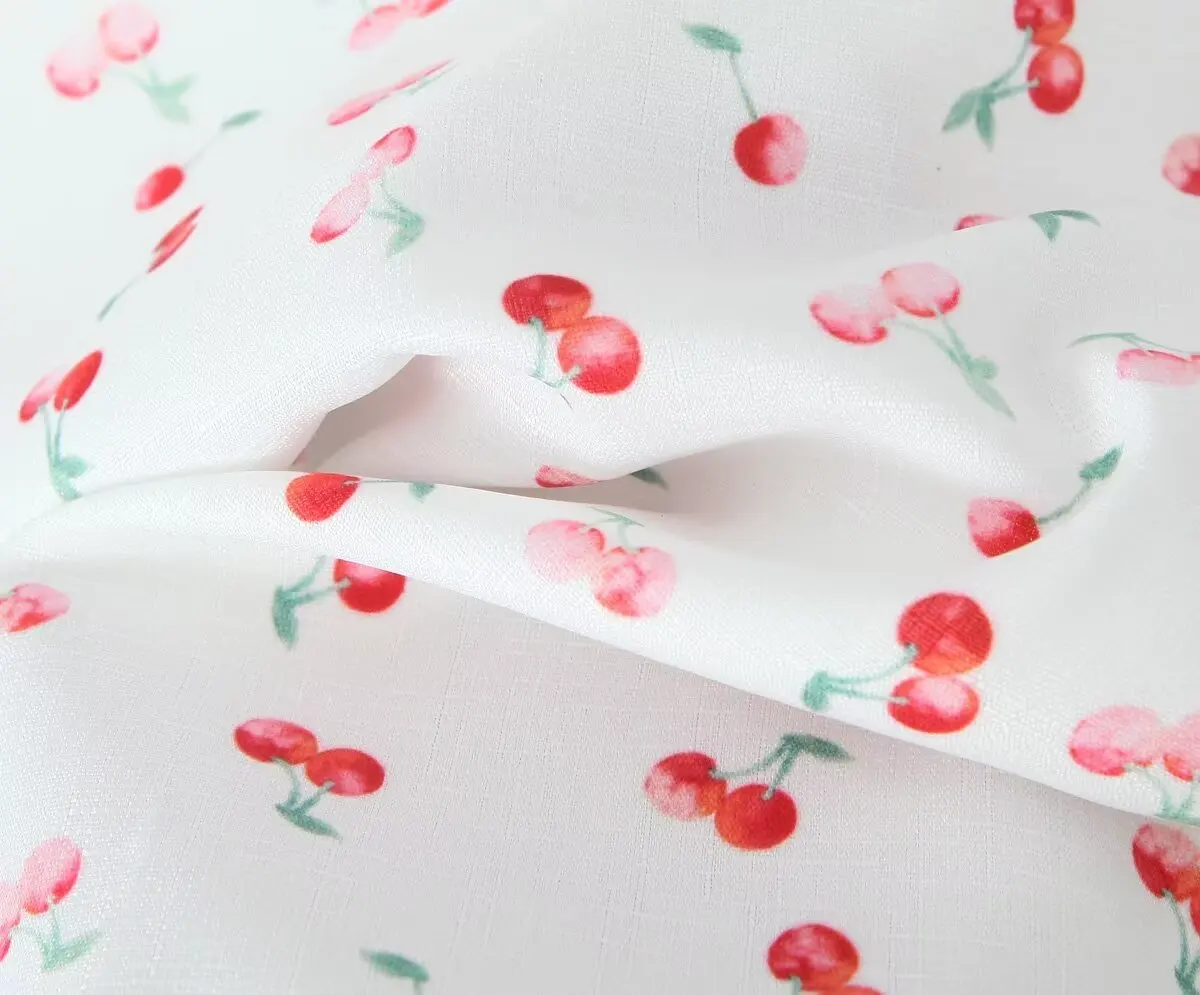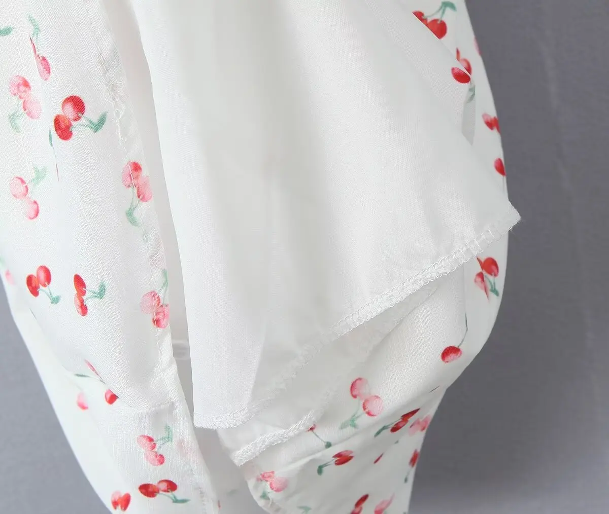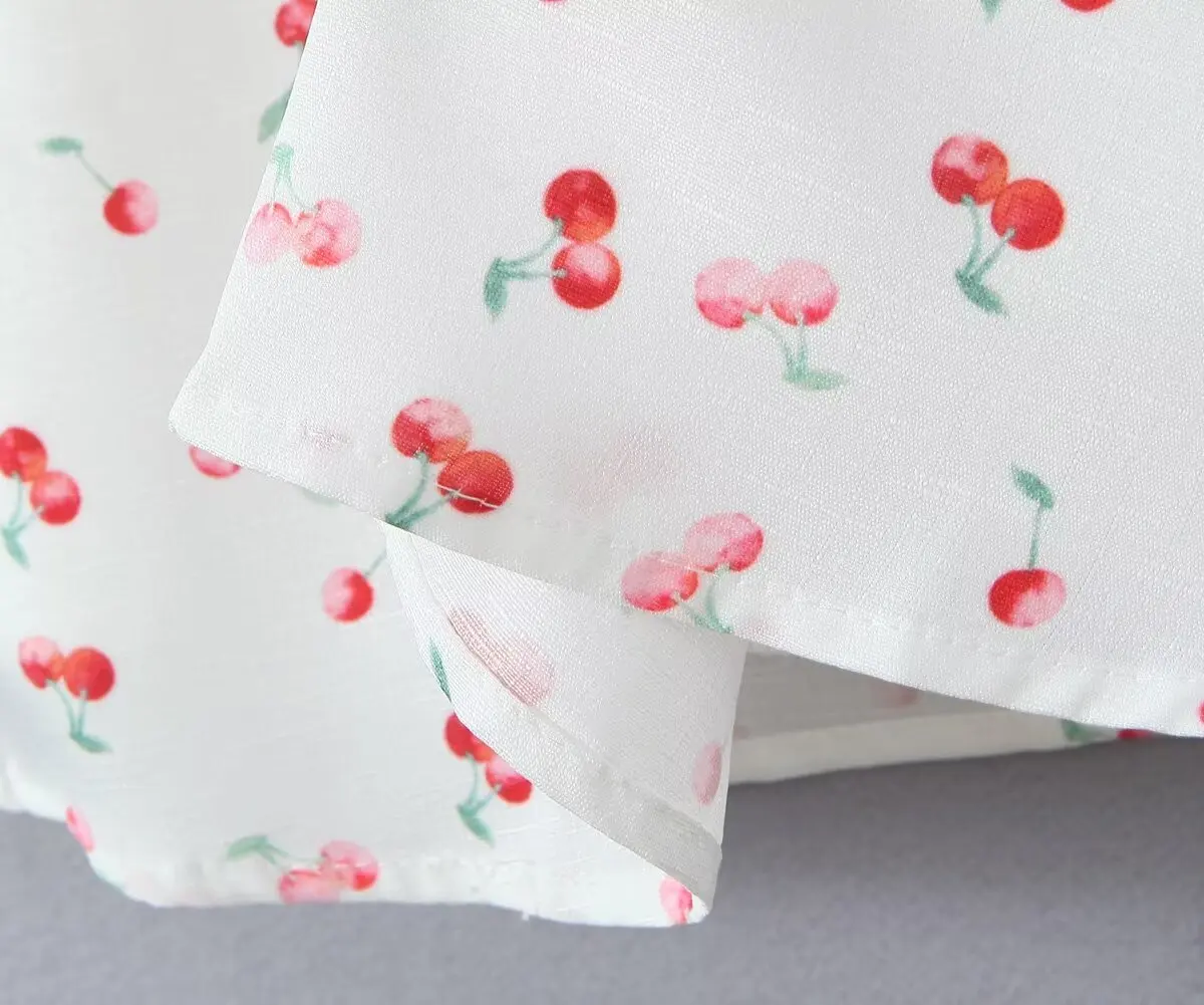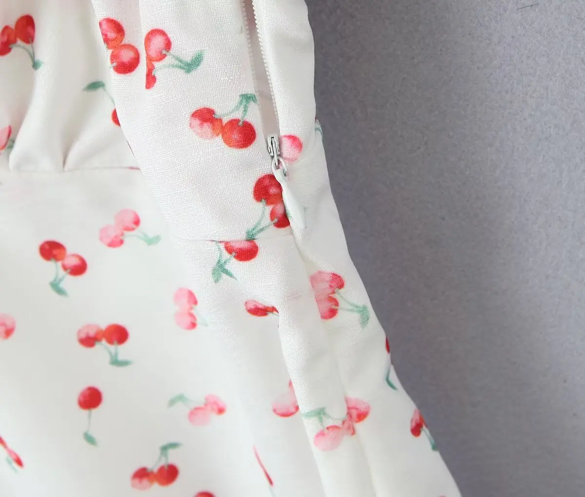Summer Women Sexy Backless Cherry Printed Tank Dress Sleeveless V Neck A-line Holiday Short Dresses French Style Robe