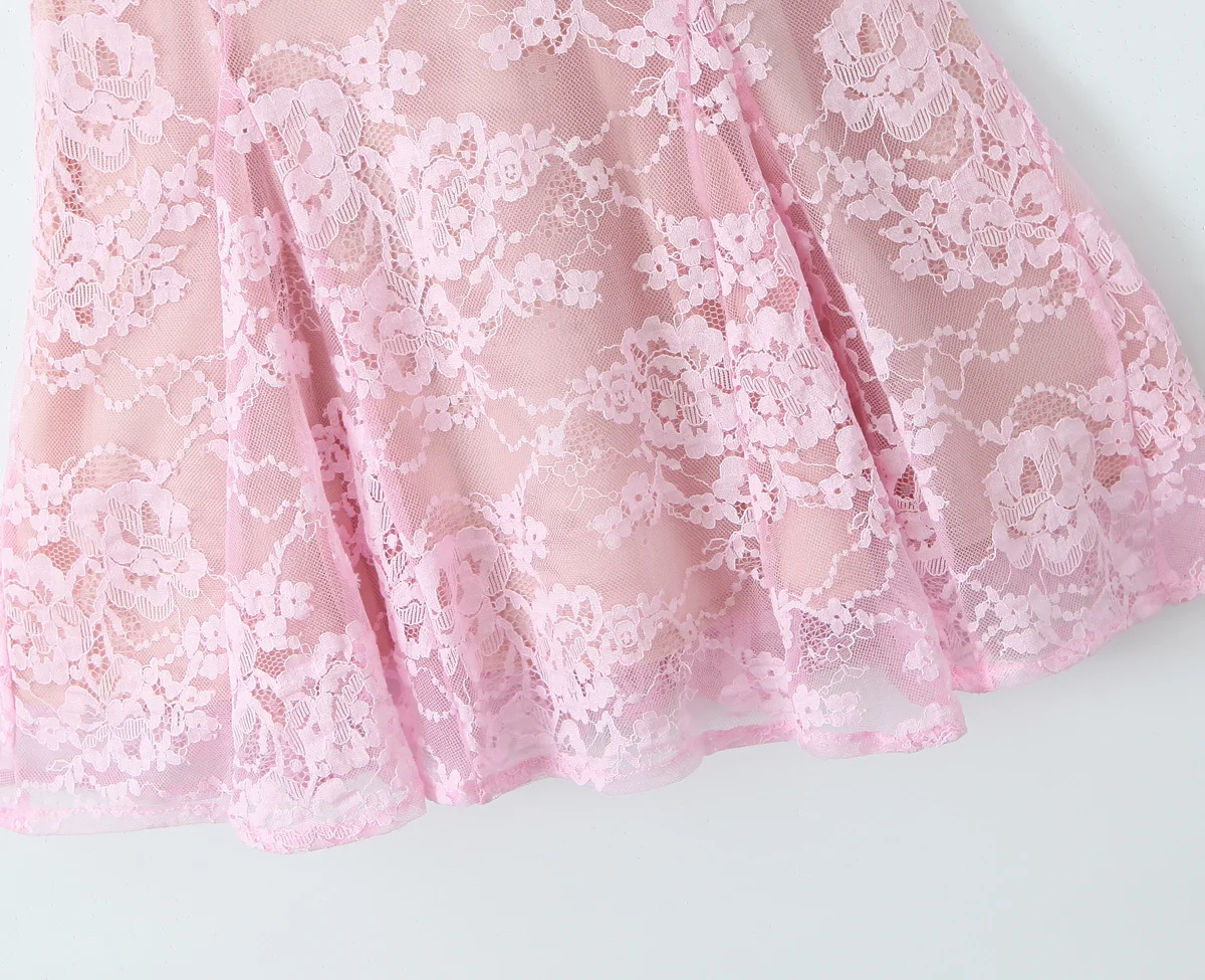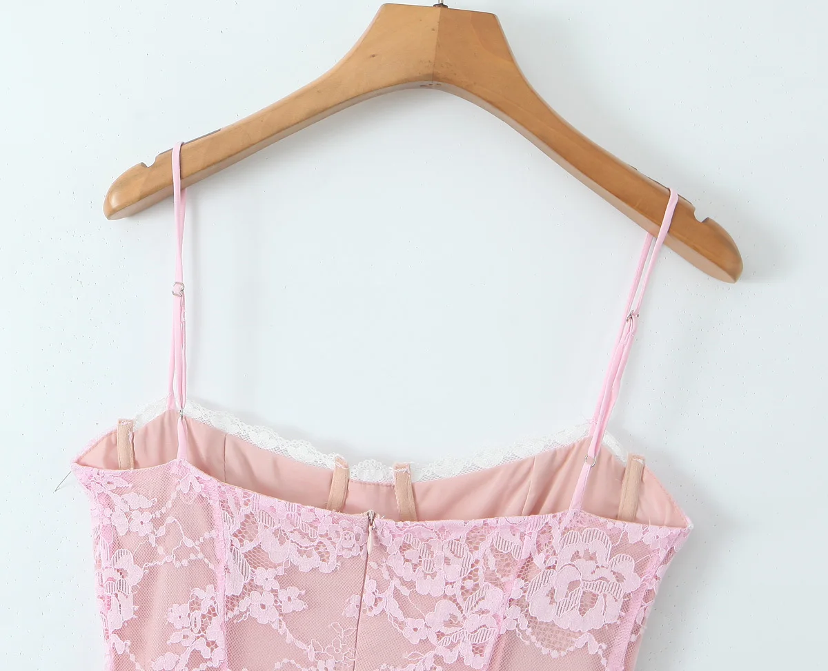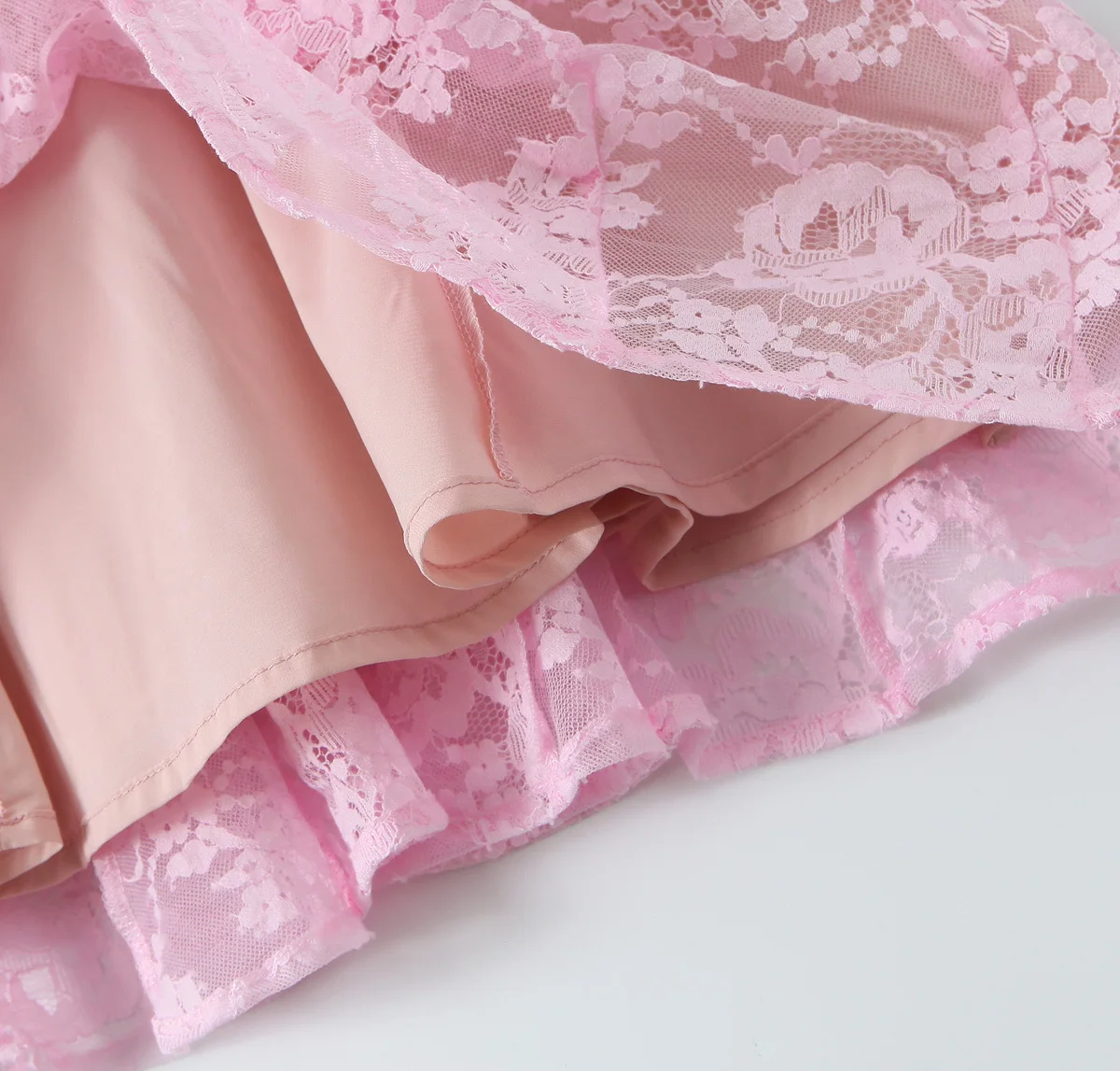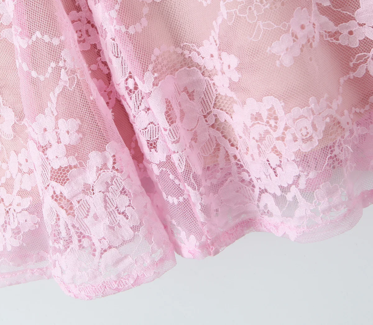 Women Sexy Elegant 2pcs Pink Lace Dresses