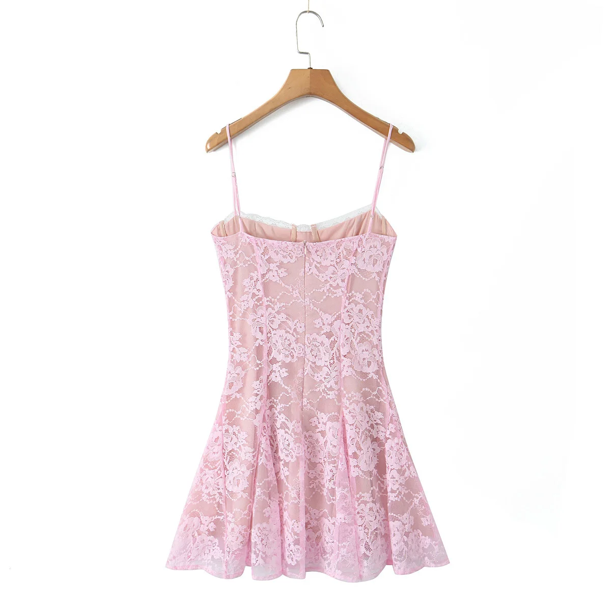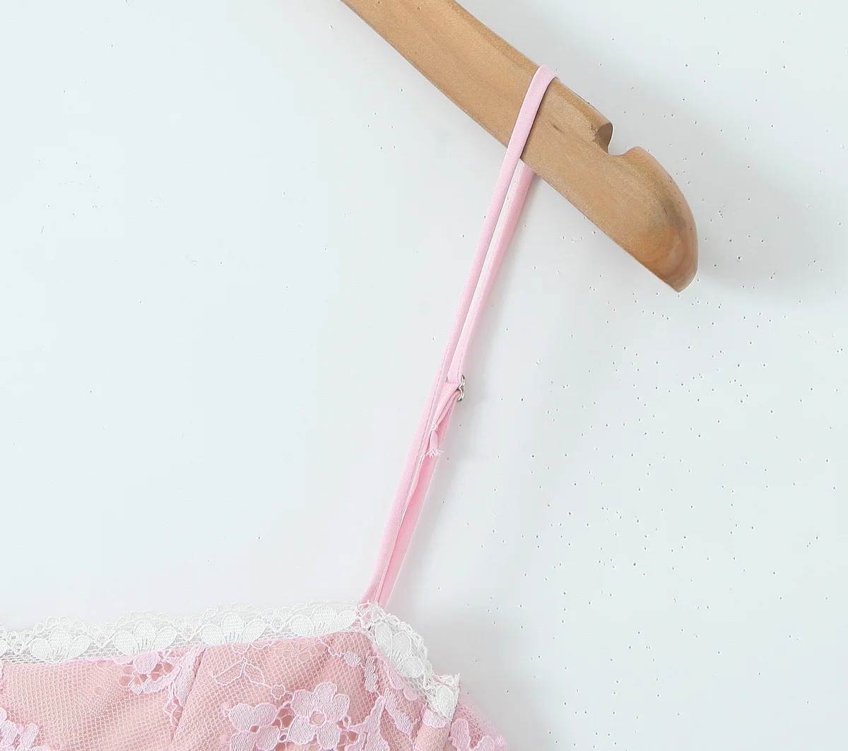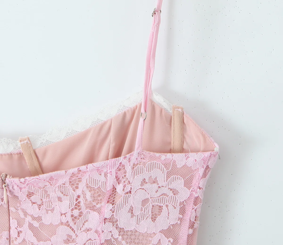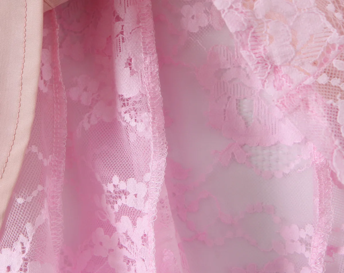 Women Sexy Elegant 2pcs Pink Lace Dresses