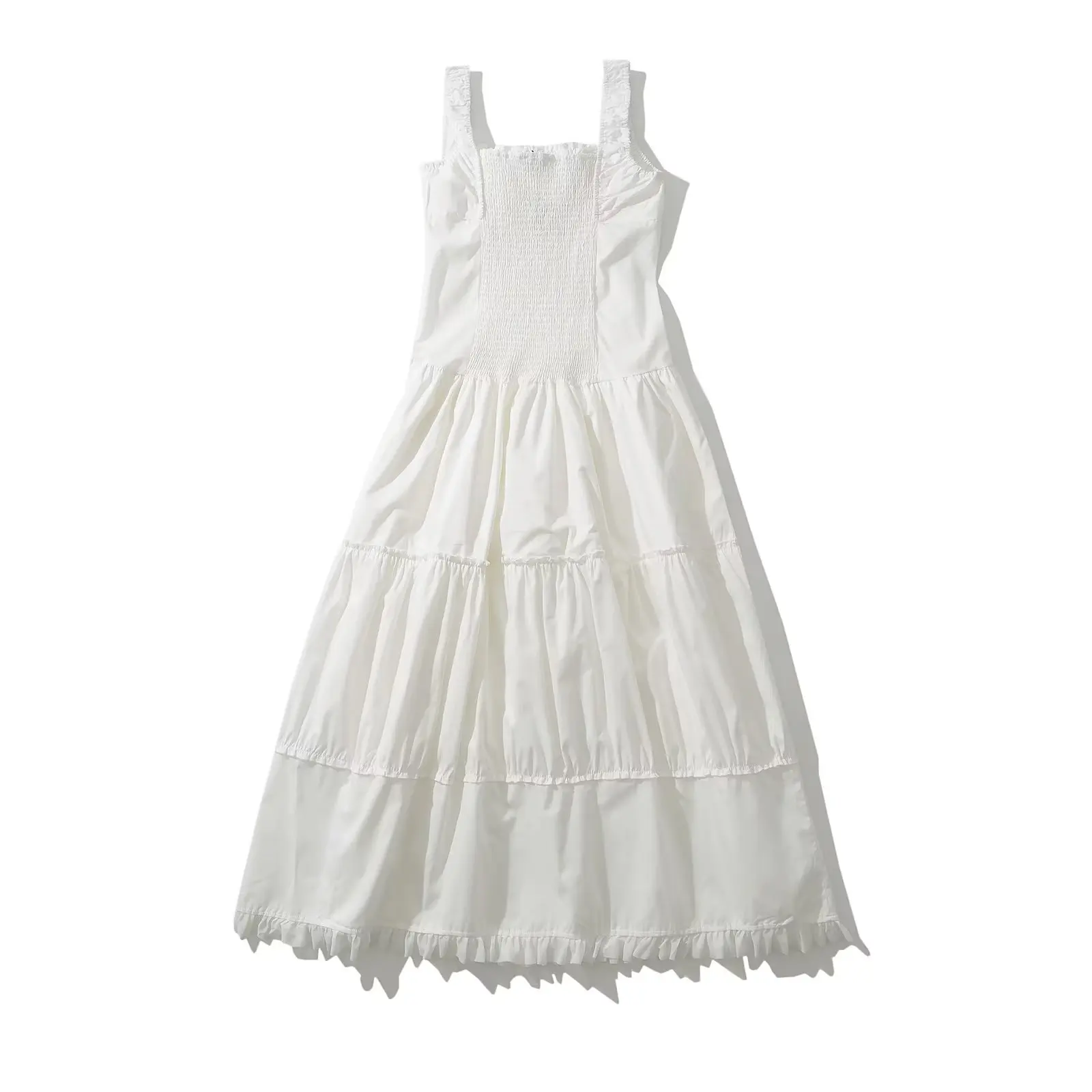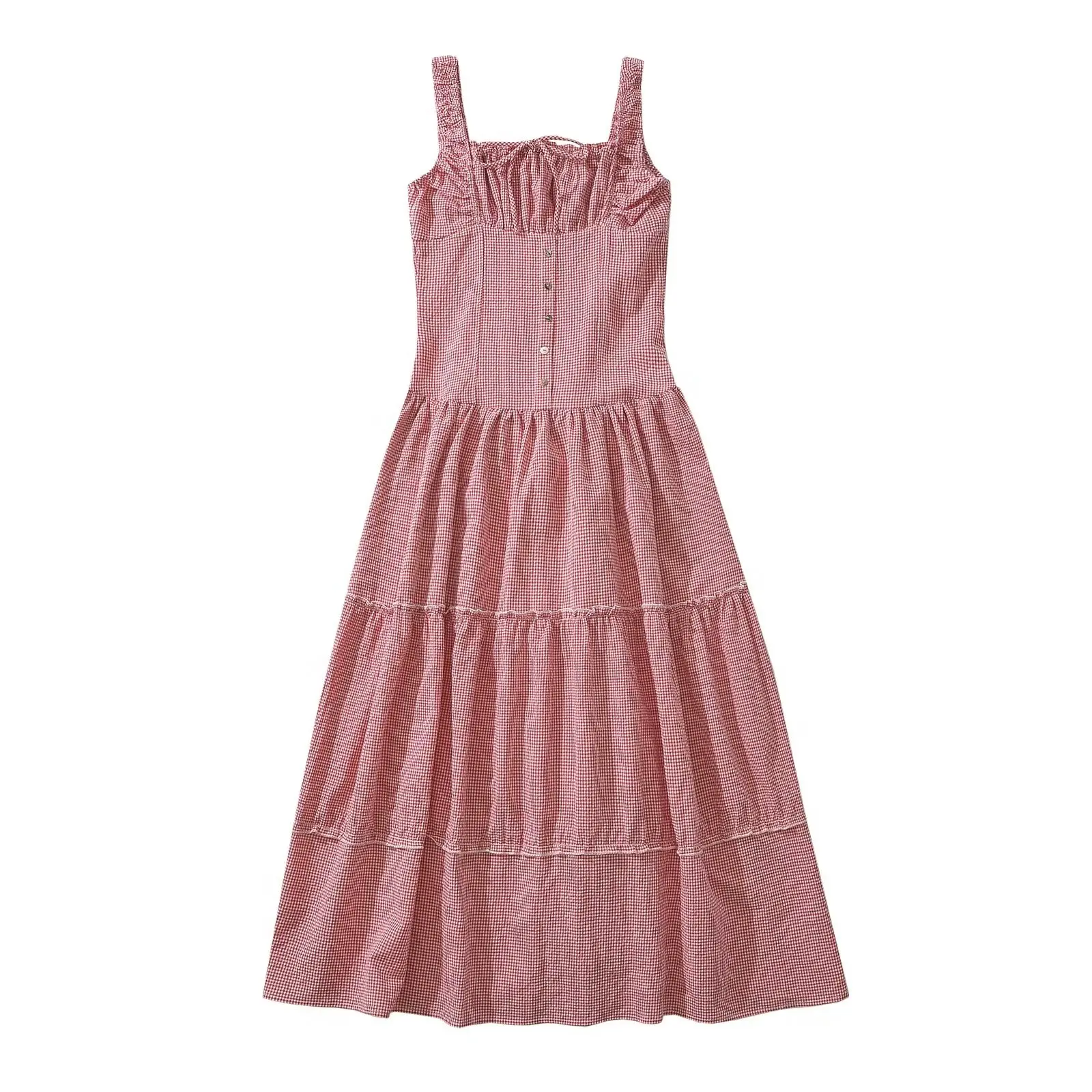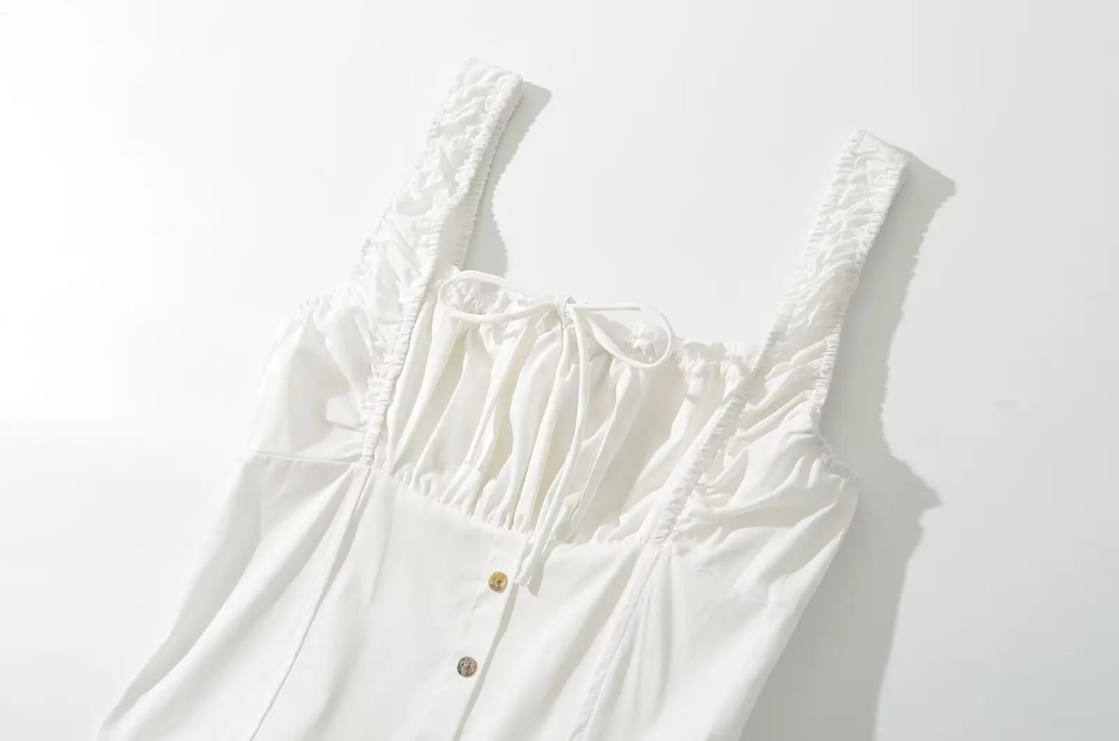 Women Sexy Ruched Chest Corset Style Sling Long Dress Low Waist Sleeveless Female Holiday Summer Robe