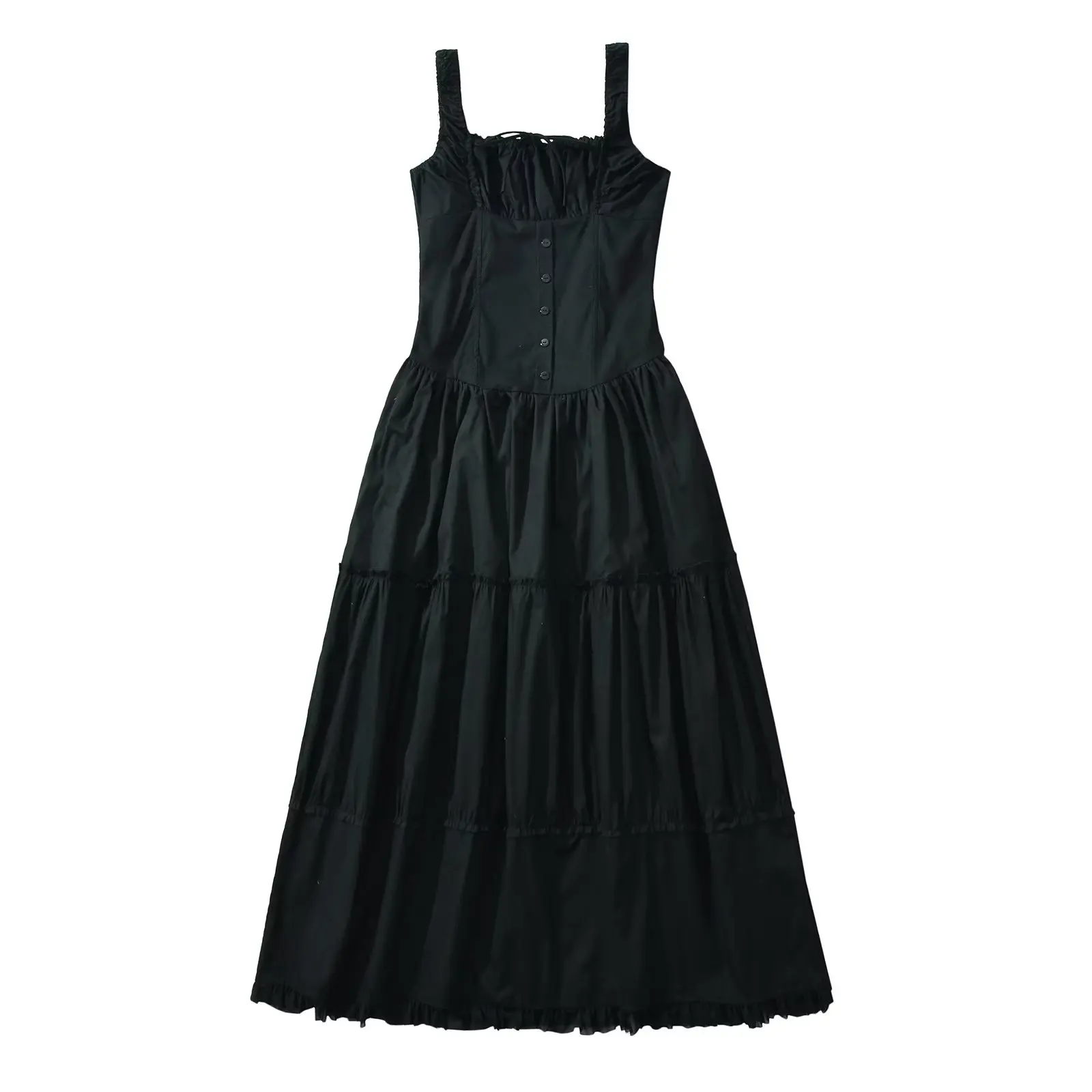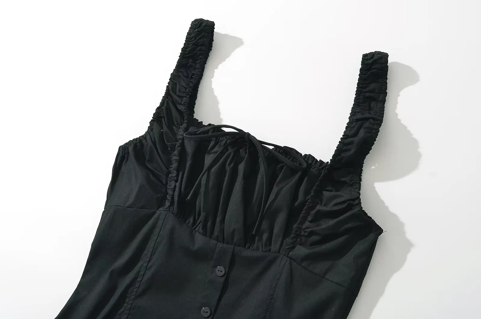Women Sexy Ruched Chest Corset Style Sling Long Dress Low Waist Sleeveless Female Holiday